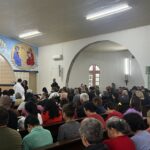 Após a chegada à capela, foi celebrada a Santa Missa em homenagem a Nossa Senhora Aparecida. O momento de fé seguiu com um almoço festivo, animado pela banda católica Anjos Guardiões, que trouxe música e alegria aos participantes.