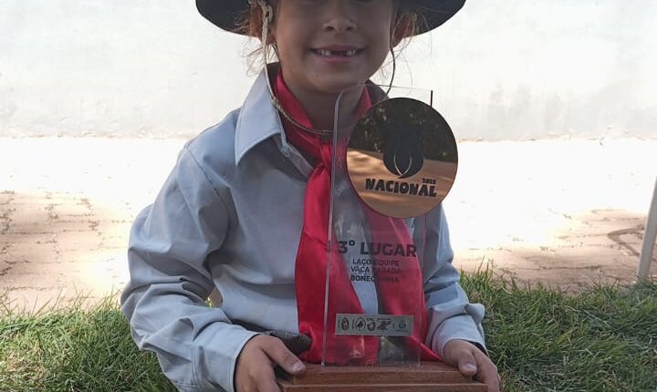 Na imensidão das arenas campeiras, entre gritos de torcida e o som do laço cortando o ar, uma pequena gaúcha brilhou de forma única. Maria Antônia, com seu jeito doce e decidido, representou o Rio Grande do Sul na 21ª Festa Campeira Nacional de Campeões, realizada em Cristalina, Goiás, e conquistou o terceiro lugar geral na categoria Braço de Ouro – Bonequinha, modalidade Vaca Parada.