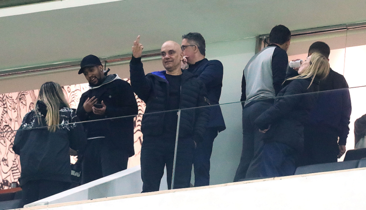 No mesmo dia em que foi incluído na lista de sanções do governo dos Estados Unidos, o ministro do Supremo Tribunal Federal, Alexandre de Moraes, esteve na Arena Corinthians, em São Paulo, para acompanhar o confronto entre Corinthians e Palmeiras pelas oitavas de final da Copa do Brasil.