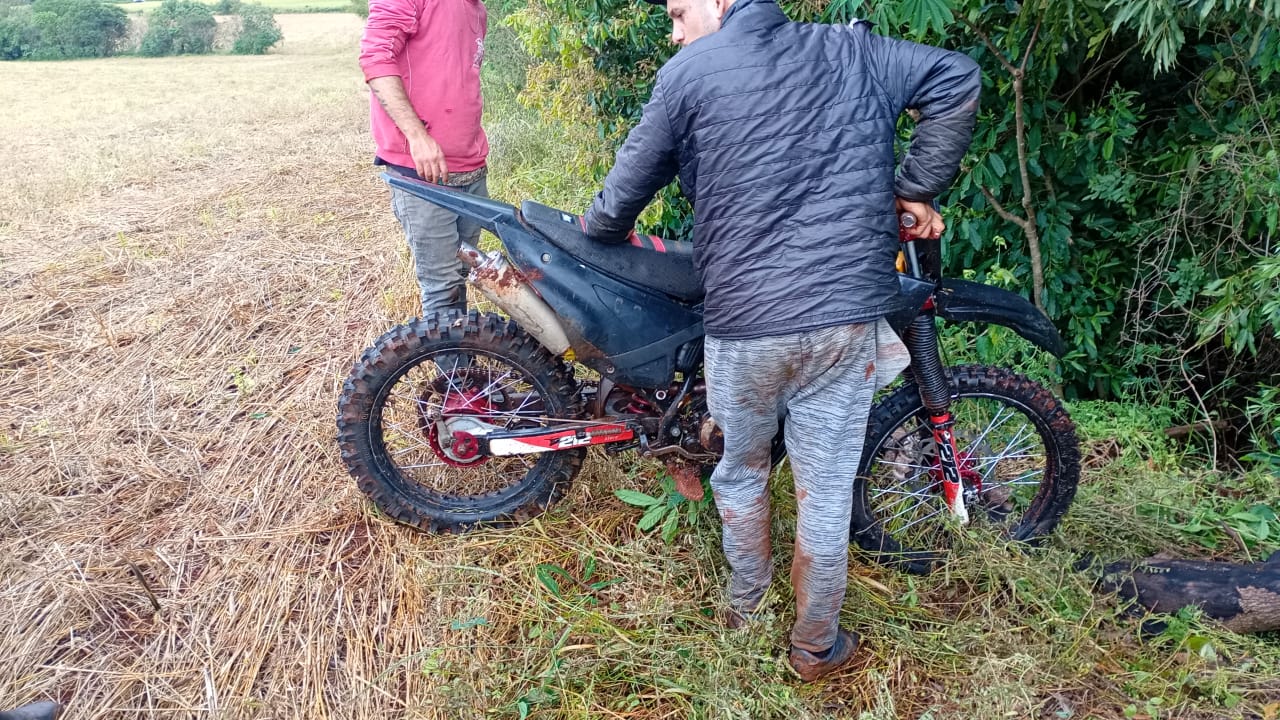 Foi localizada a motocicleta Honda/CRF 230F, cor vermelha com kit plástico preto, que havia sido furtada entre os dias 7 e 8 de outubro na sede do grupo Off Road Saldanha, situada em uma propriedade no interior de Coronel Bicaco.