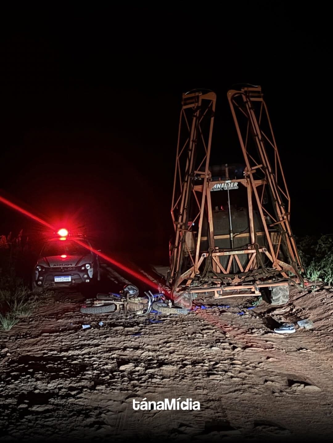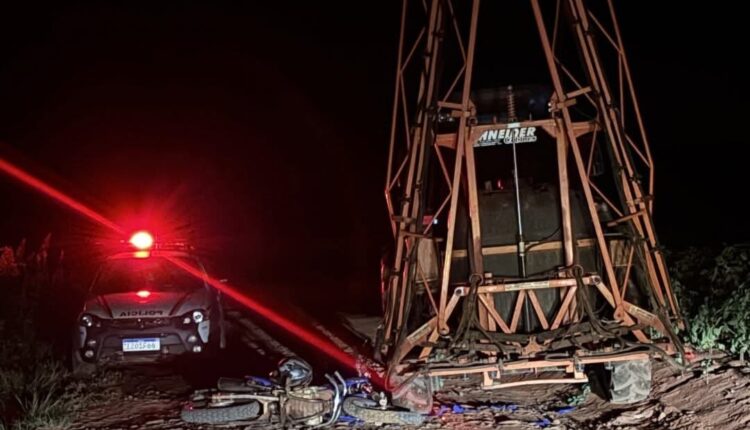 No local, foi constatada uma colisão envolvendo uma motocicleta e um trator agrícola.