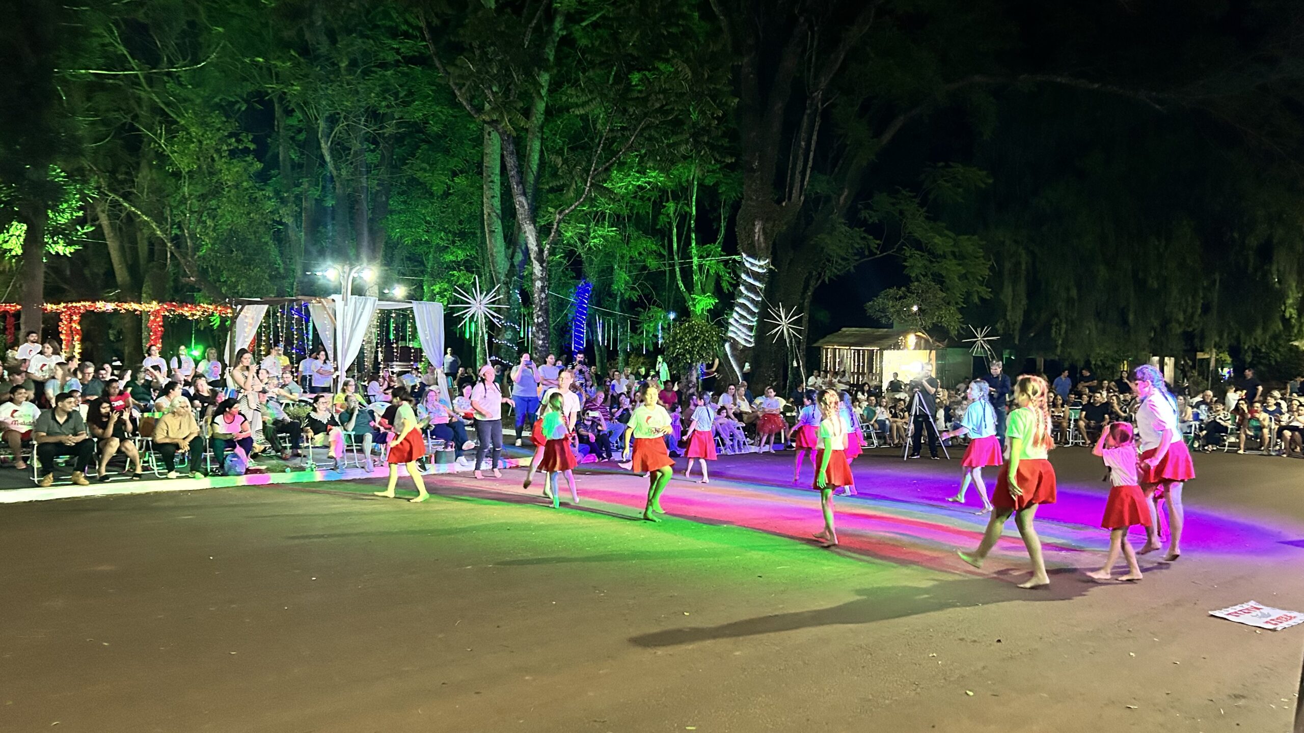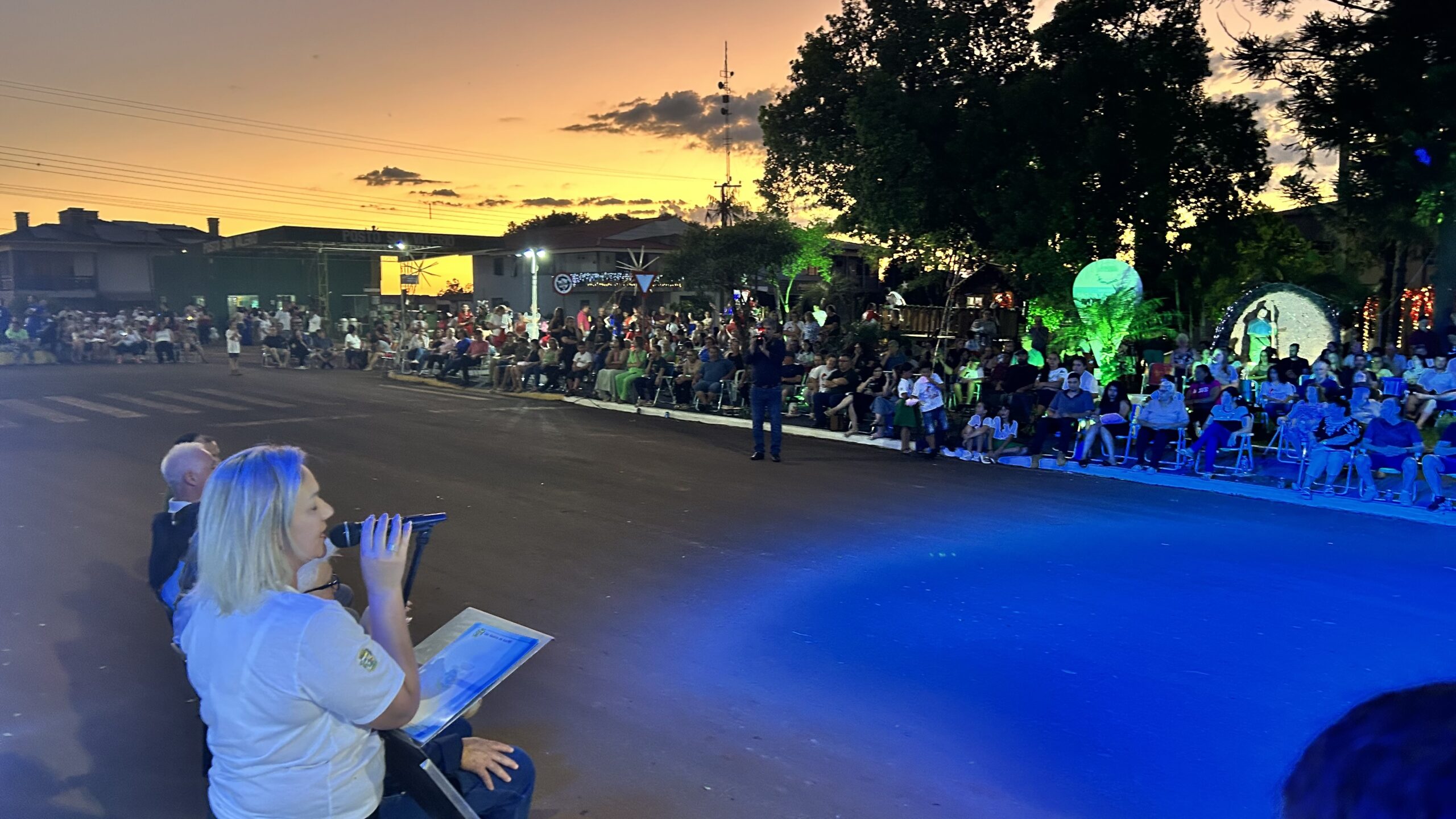 Encerrando a programação, o público foi presenteado com uma apresentação especial do grupo de patinação artística Danúbio Azul, de Itapiranga (SC). O espetáculo impressionou pela técnica, sincronia e beleza das coreografias, arrancando aplausos e tornando a noite ainda mais memorável.