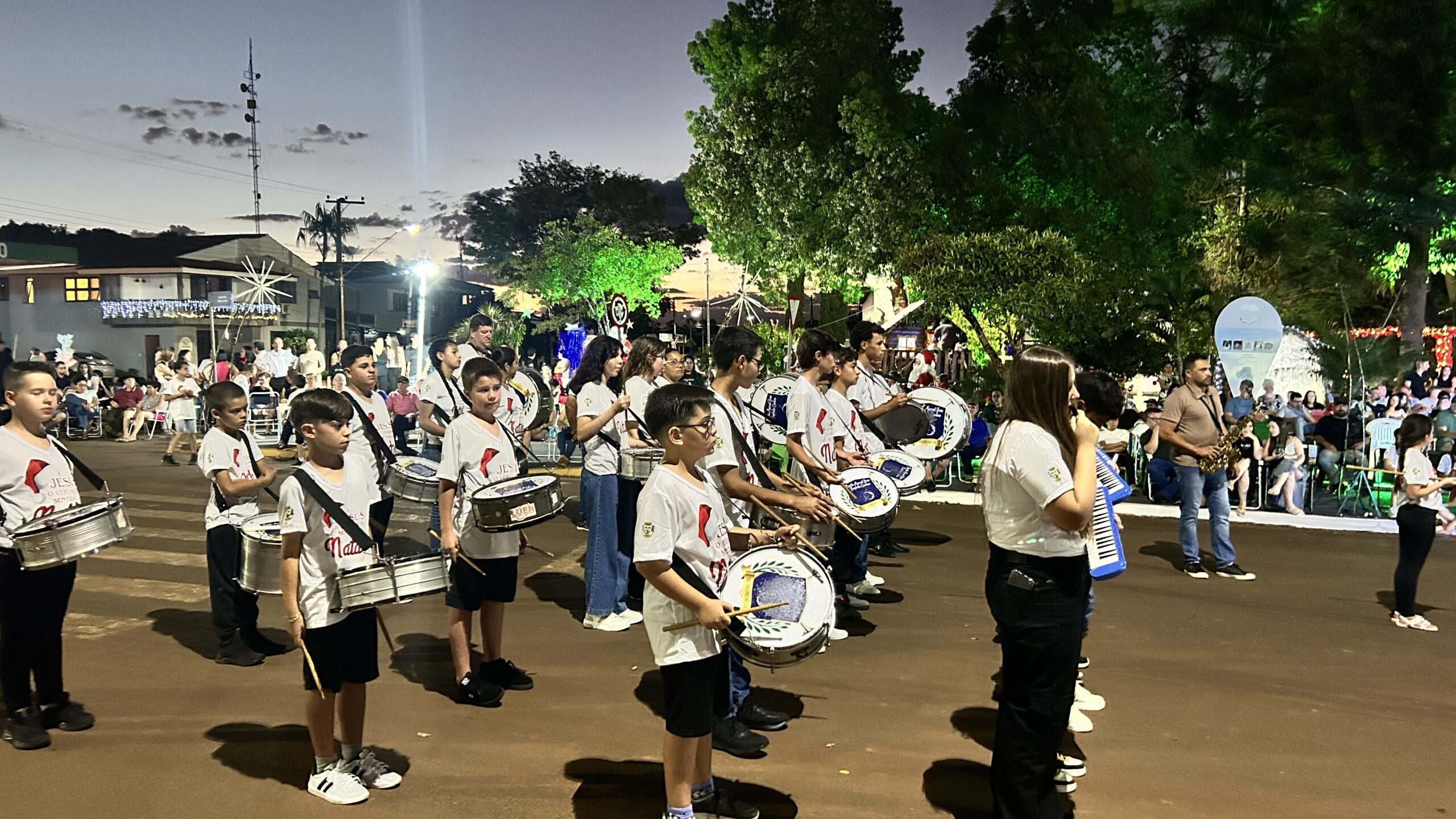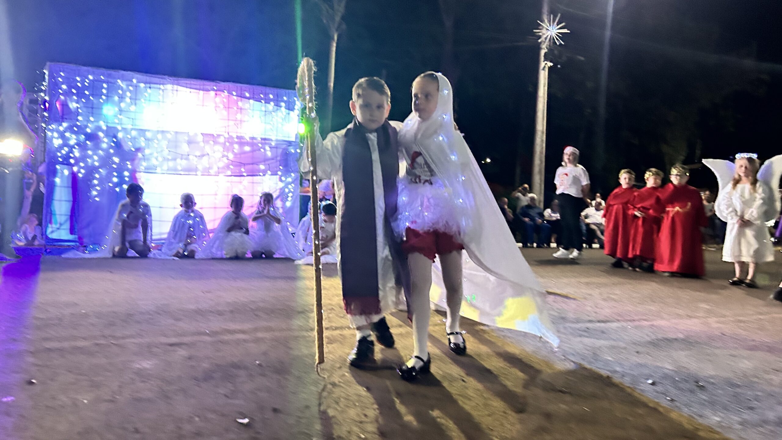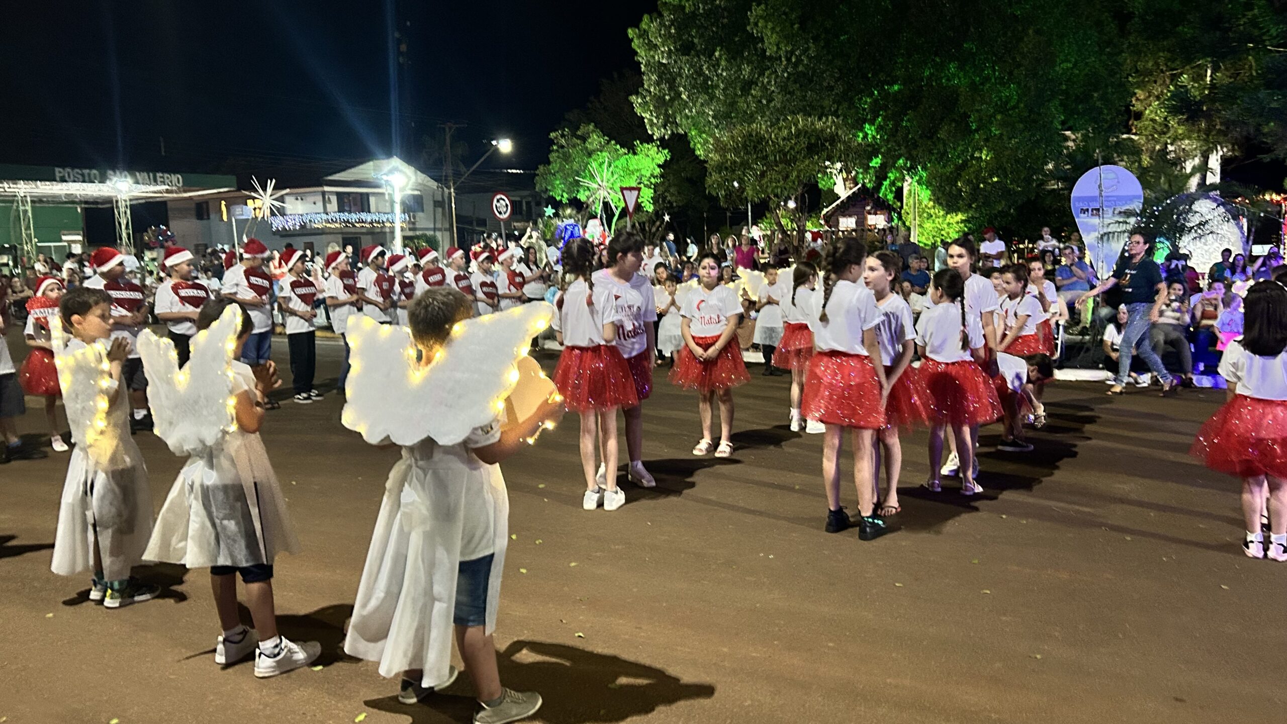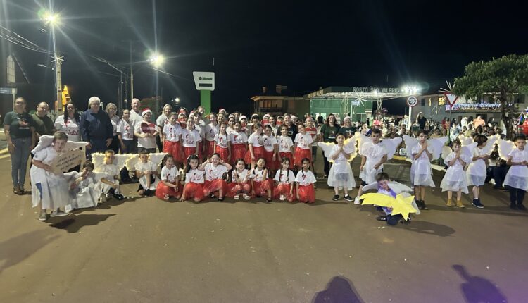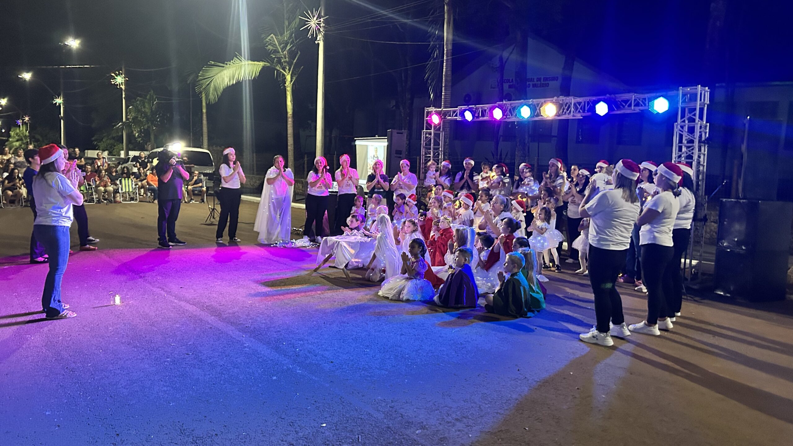 Na sequência, as apresentações das escolas do município emocionaram o público, levando mensagens de esperança, solidariedade e união. Alunos das redes municipal e estadual mostraram talento e dedicação por meio de músicas, coreografias e encenações que reforçaram os valores natalinos.