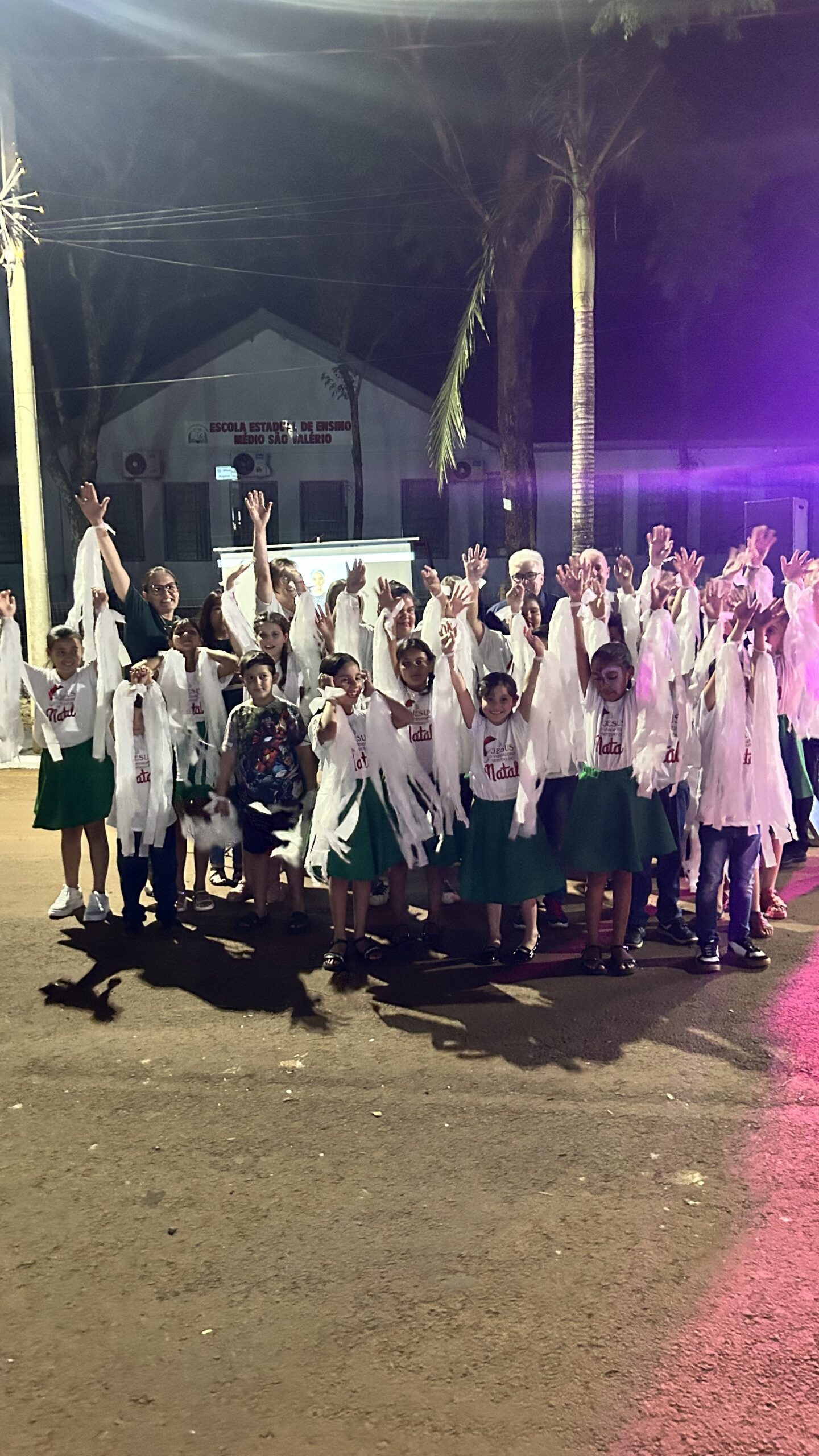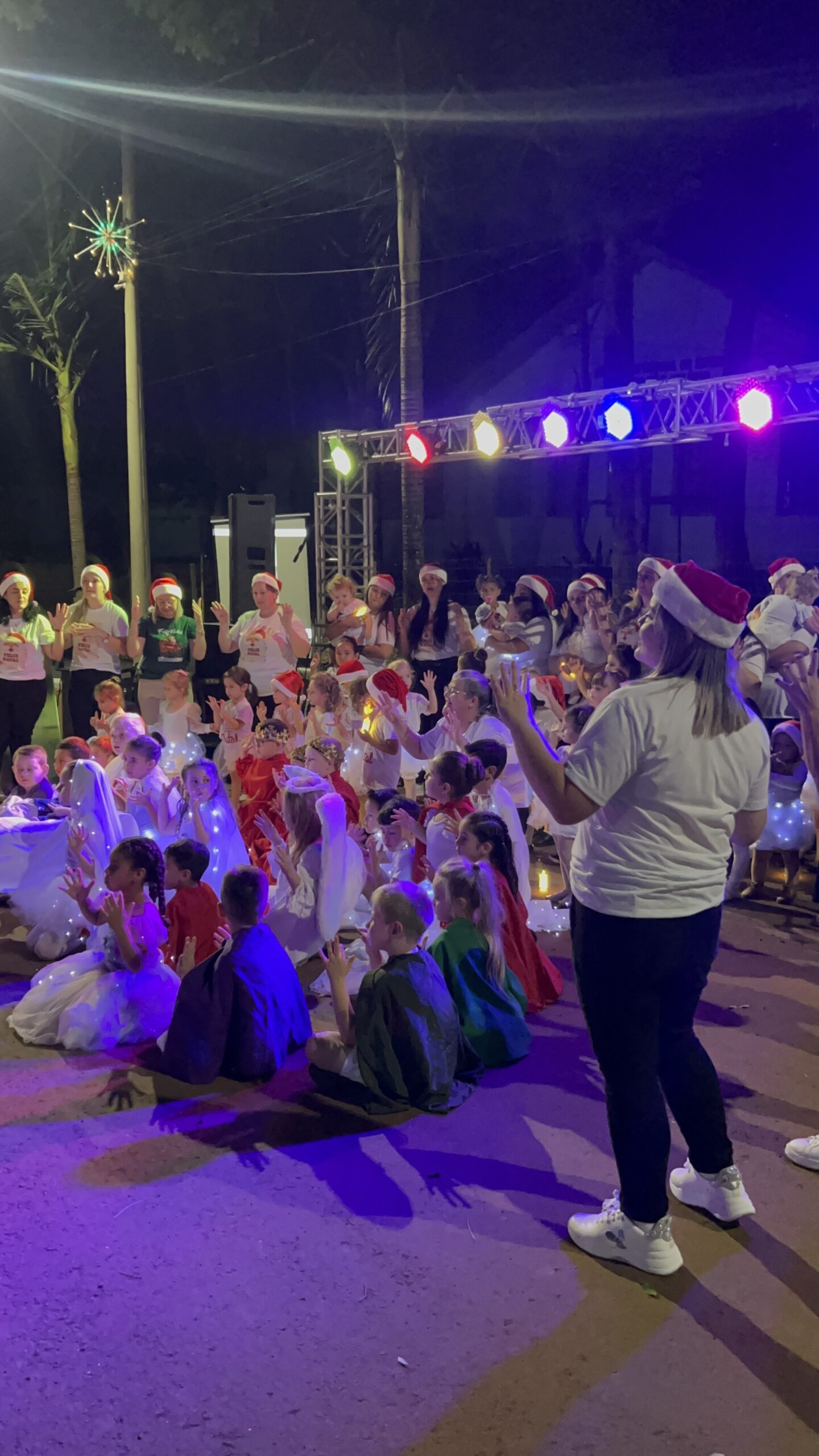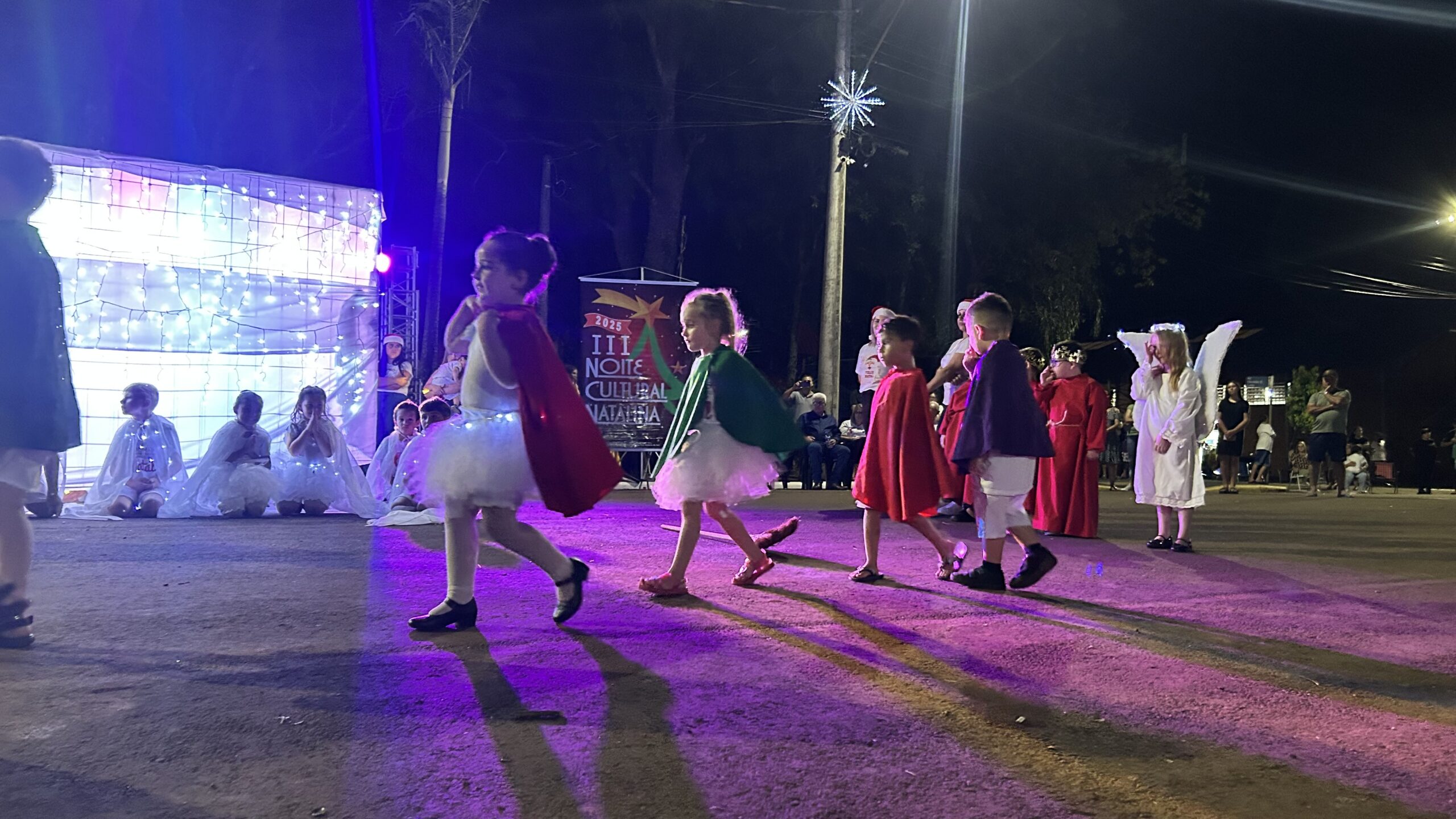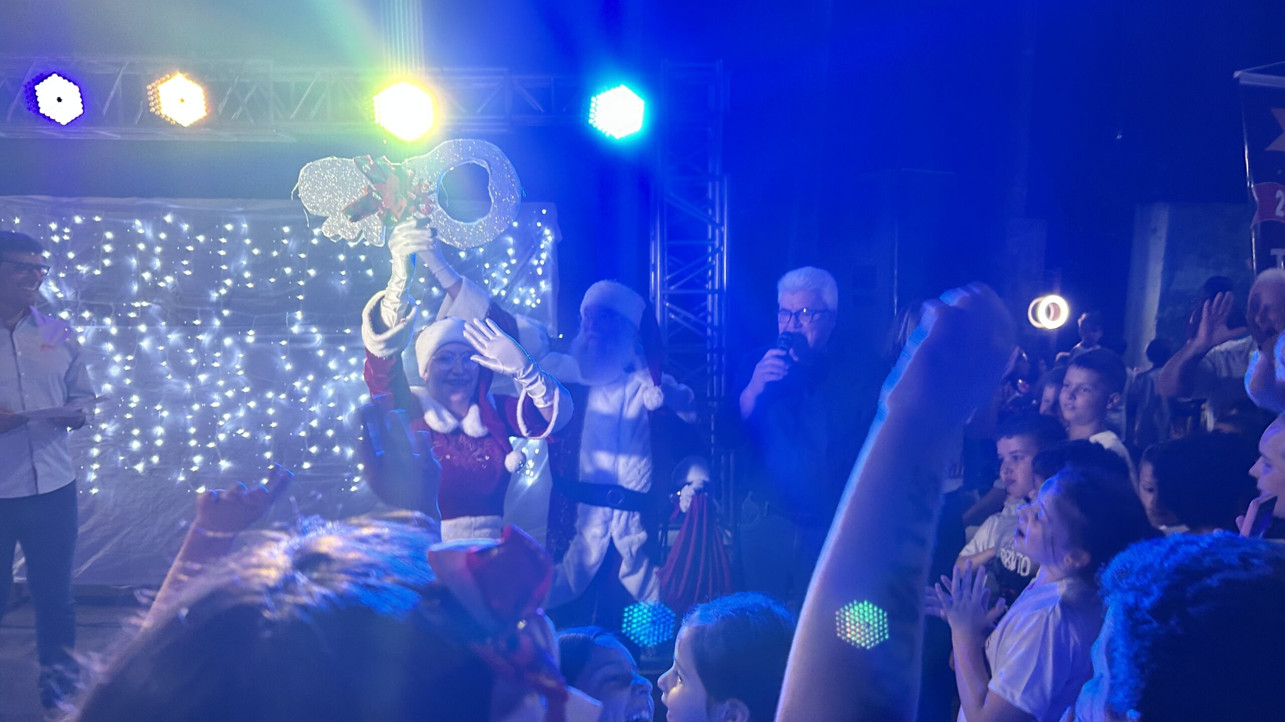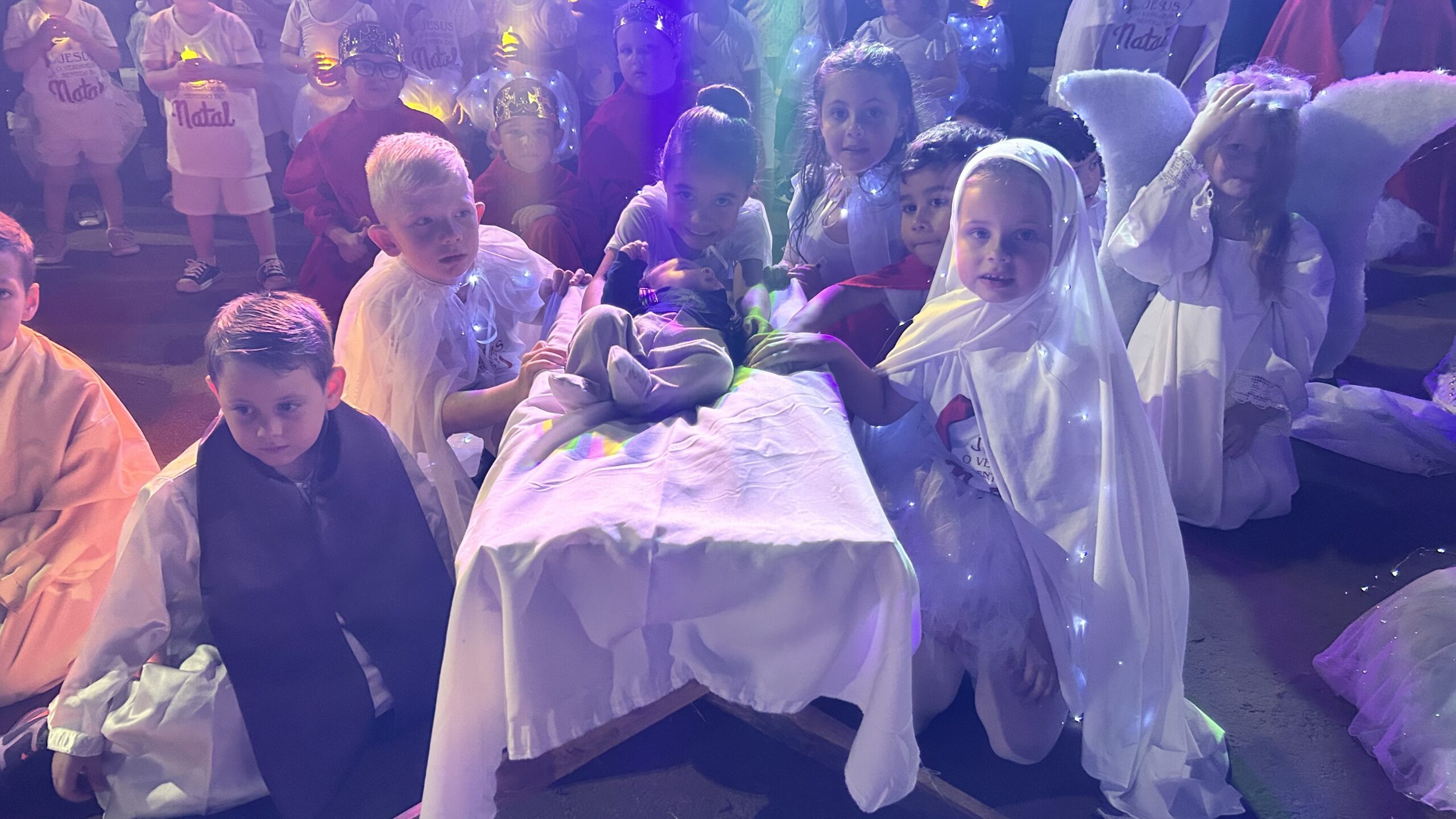 Na sequência, as apresentações das escolas do município emocionaram o público, levando mensagens de esperança, solidariedade e união. Alunos das redes municipal e estadual mostraram talento e dedicação por meio de músicas, coreografias e encenações que reforçaram os valores natalinos.