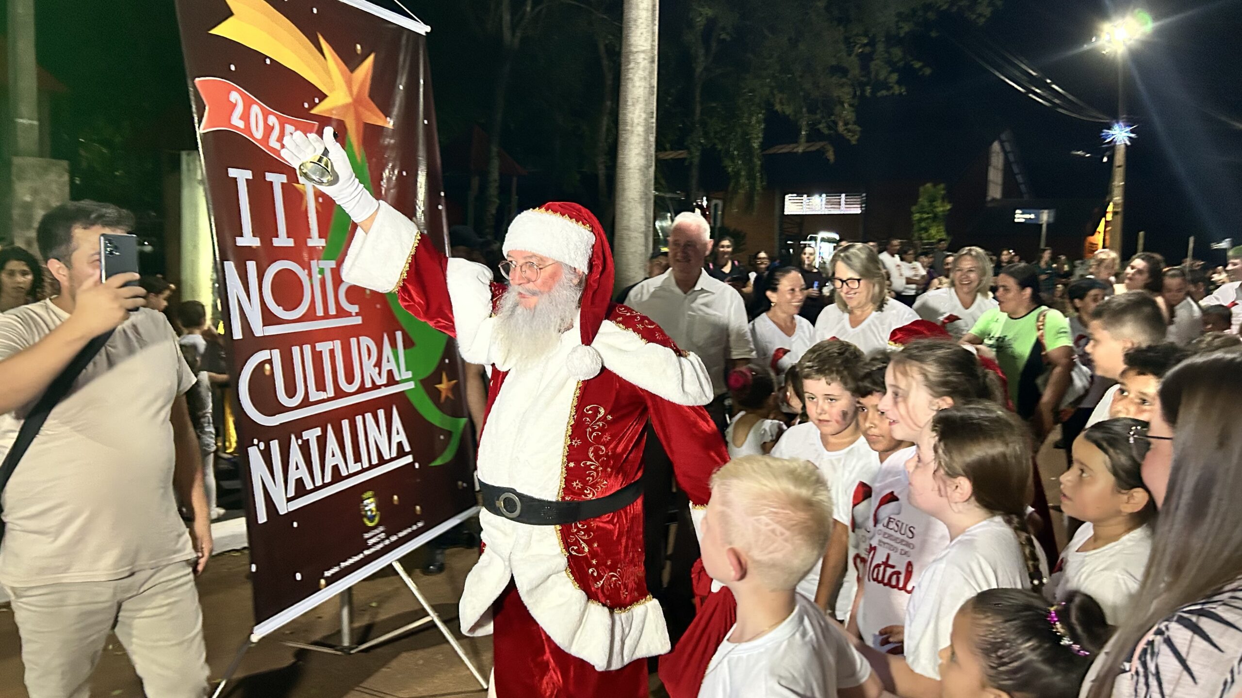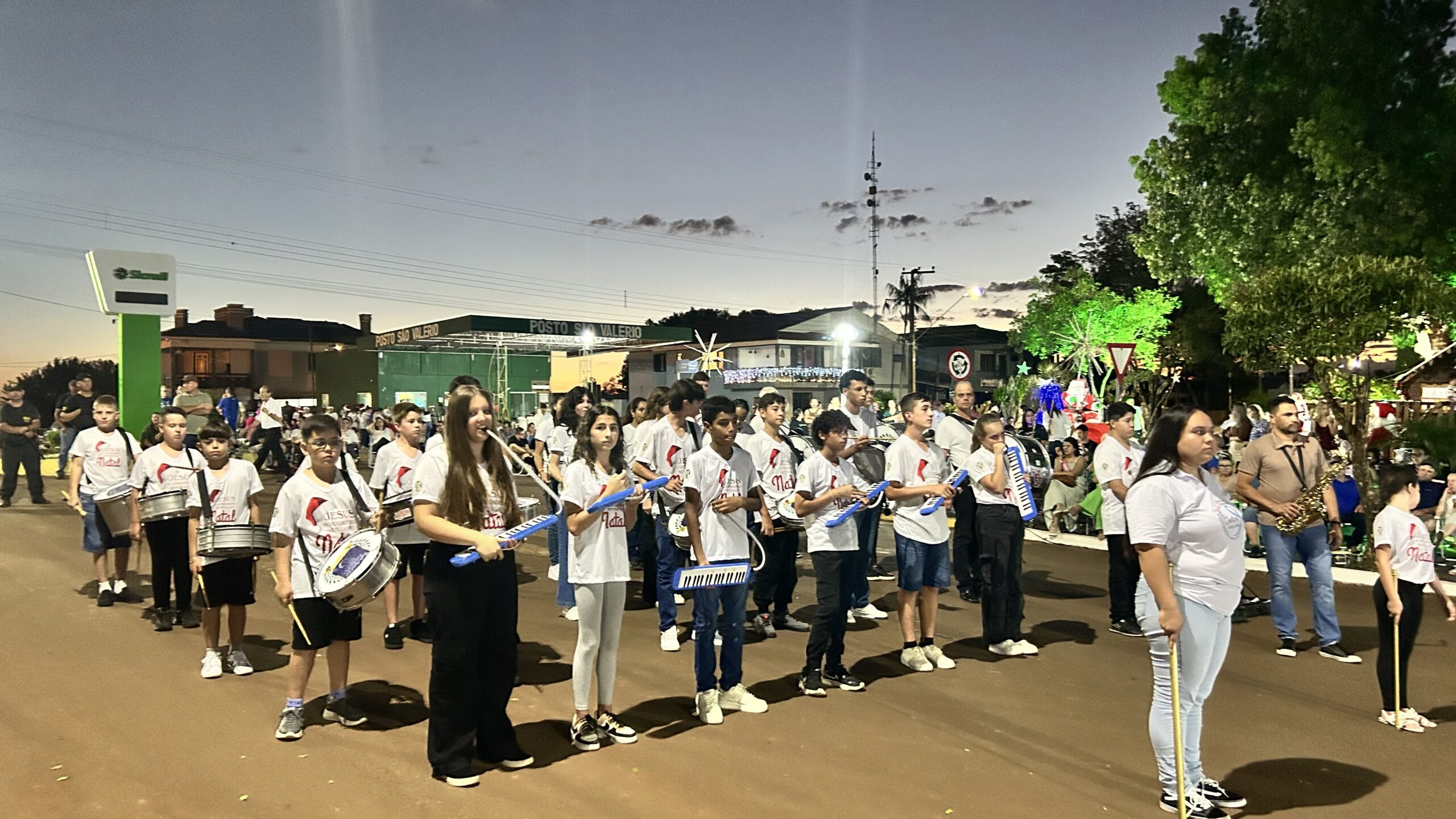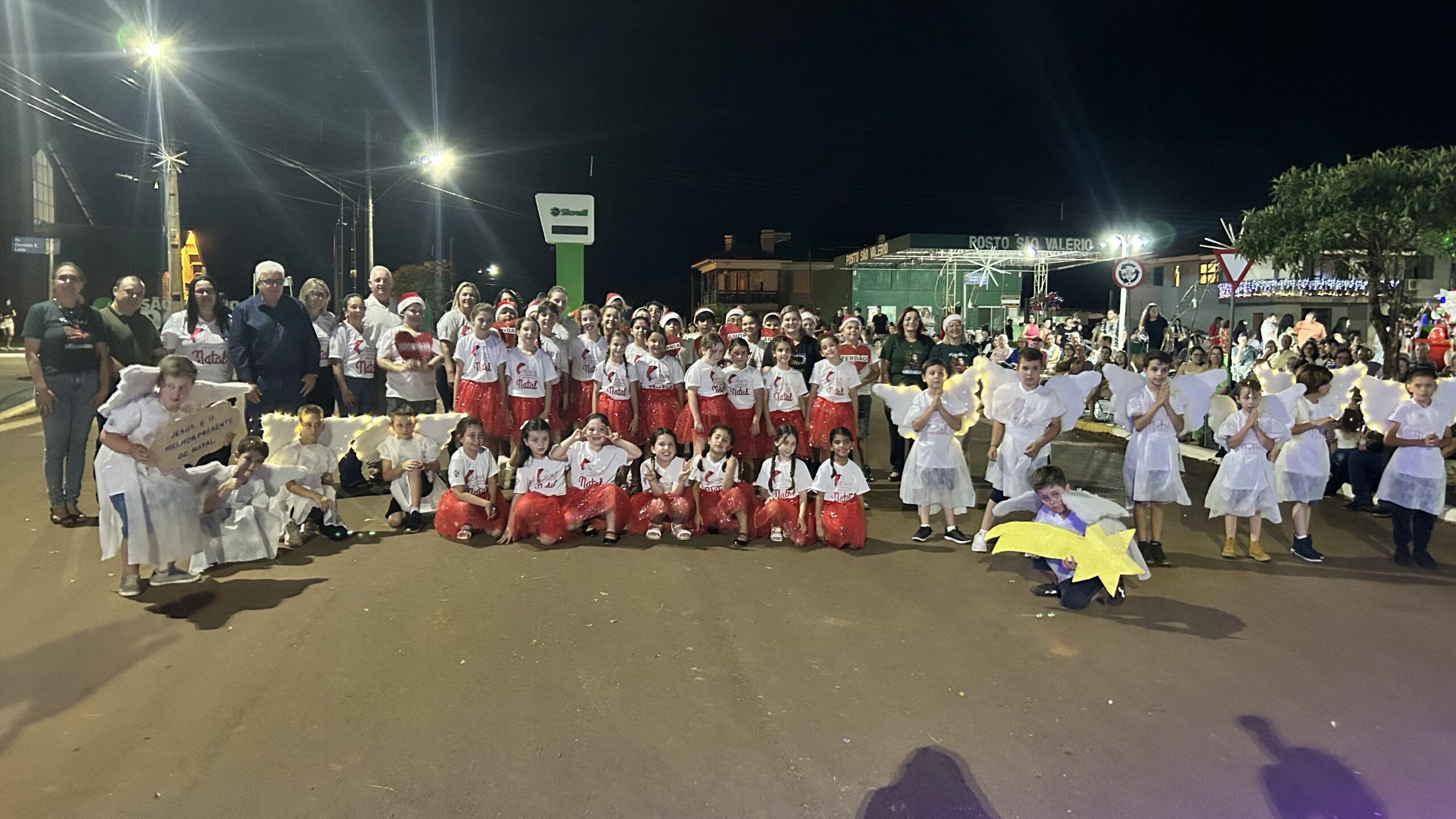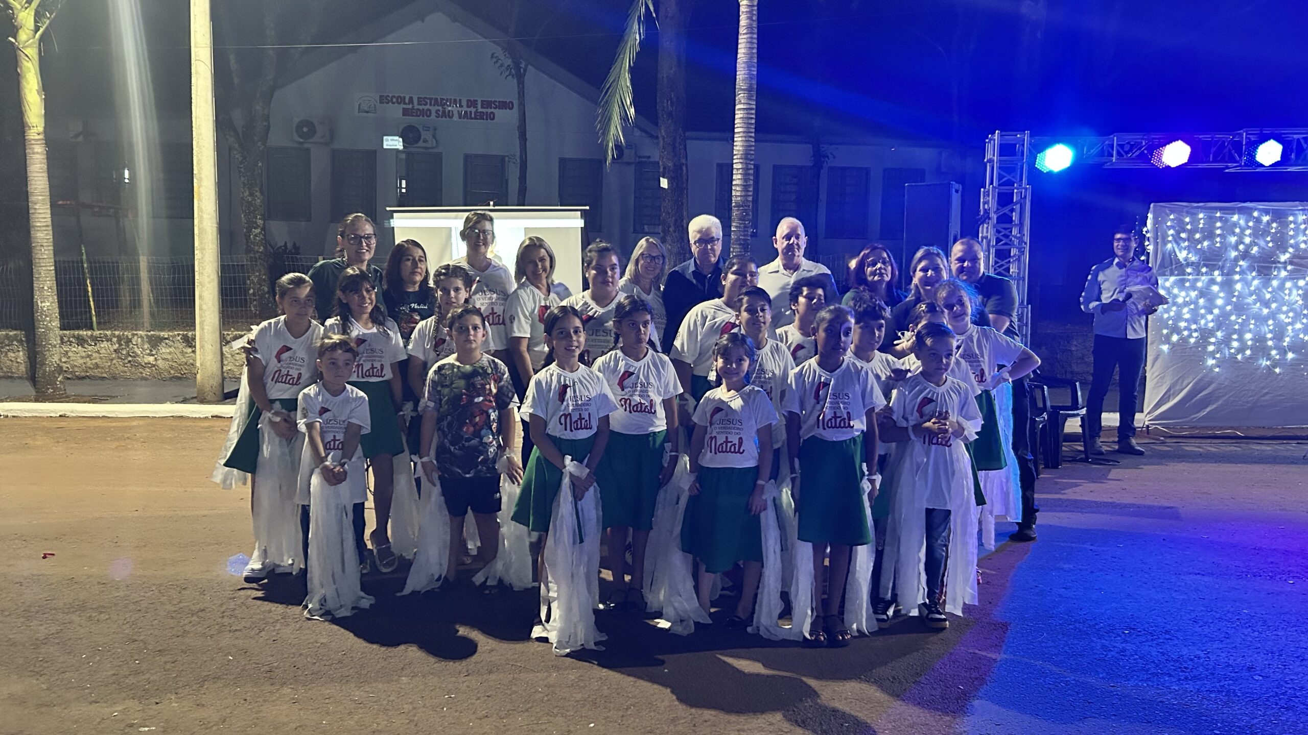 A Noite Cultural Natalina de São Valério do Sul reuniu a comunidade neste sábado em um evento marcado por emoção, cultura e o verdadeiro espírito do Natal. A programação teve início com a apresentação da Banda Municipal, que abriu oficialmente a noite com um repertório especial, criando o clima festivo e acolhedor do Natal.