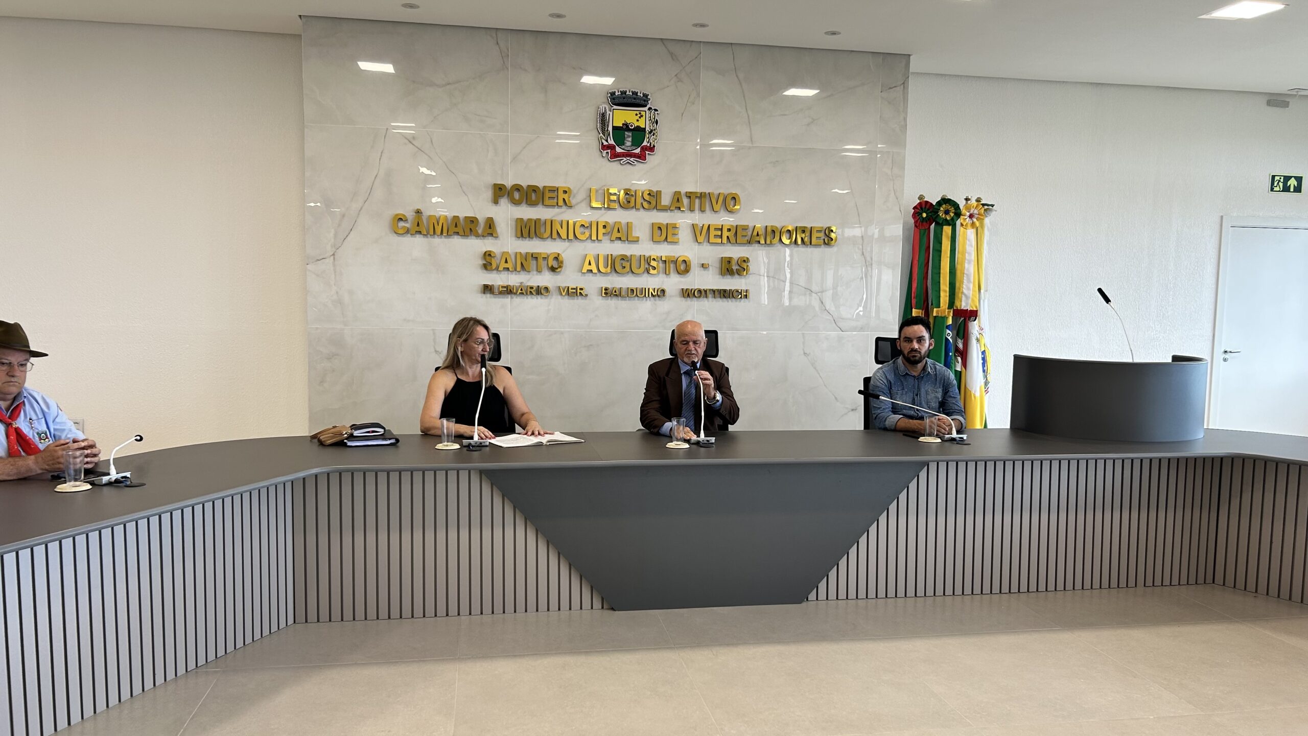 Ocorreu na manhã desta quinta-feira a sessão solene de posse da nova Mesa Diretora da Câmara de Vereadores de Santo Augusto. O ato foi aberto ao público e marcou o início da nova condução administrativa e legislativa do Parlamento municipal.
