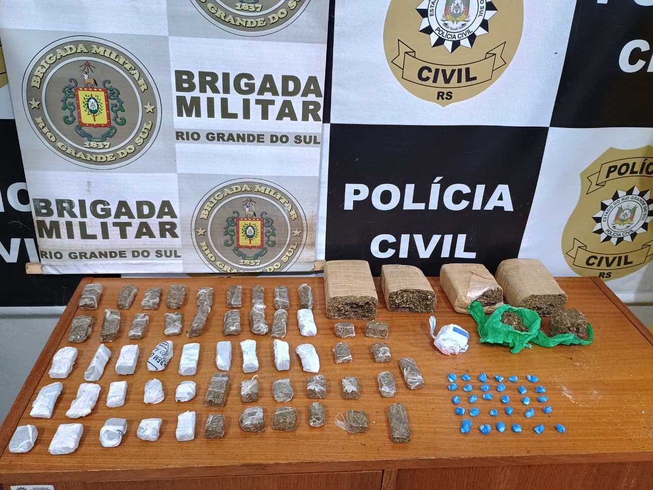 Durante as diligências, as forças de segurança apreenderam 1,800 quilo de maconha e 1,173 quilo de cocaína, totalizando mais de 2,9 quilos de drogas retiradas de circulação. Também foram recolhidas três balanças de precisão, quantia em dinheiro e uma espingarda artesanal.