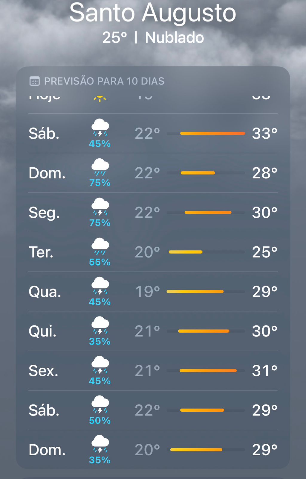 Em Santo Augusto, os termômetros podem chegar aos 33°C neste primeiro dia, reforçando a presença do calor mesmo com a chegada do outono. A tendência, no entanto, é de mudança gradual nas condições climáticas ao longo dos próximos dias.