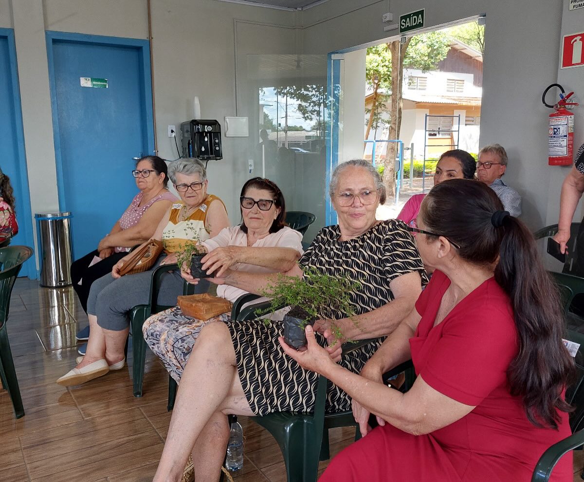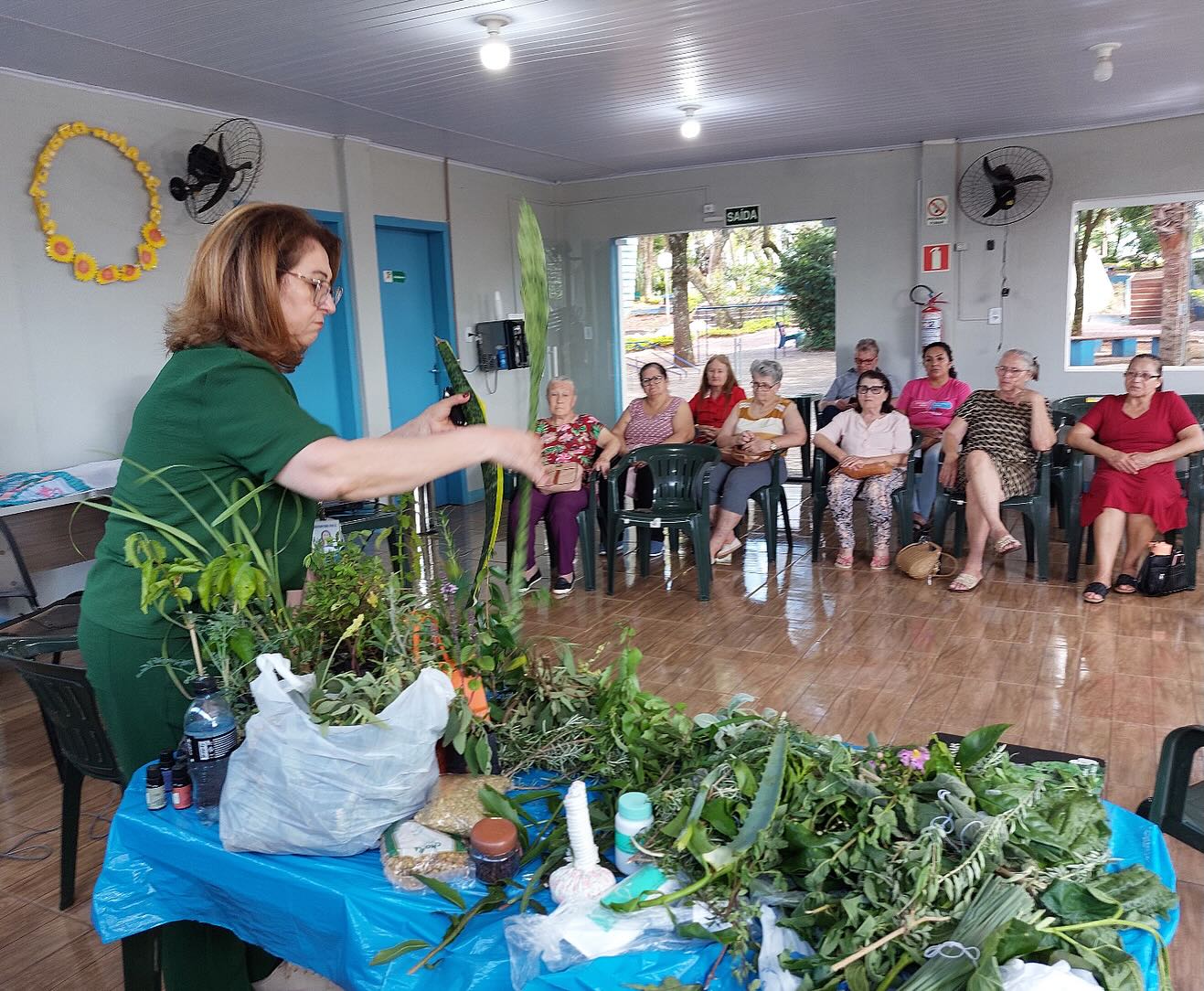 À tarde, Silvana conduziu uma palestra ao grupo da Assistência Social, abordando o uso responsável das plantas bioativas e compartilhando curiosidades sobre seus aspectos históricos e culturais.
