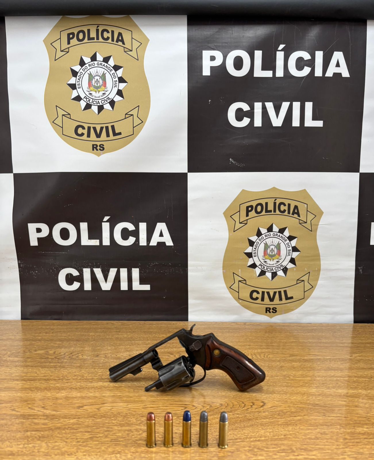 Durante as diligências, os policiais localizaram e apreenderam um revólver calibre .38, municiado com cinco cartuchos do mesmo calibre. O armamento foi recolhido e encaminhado para os procedimentos legais.
