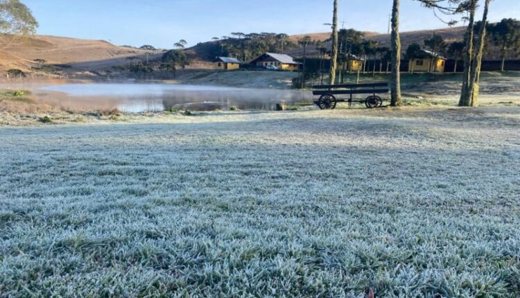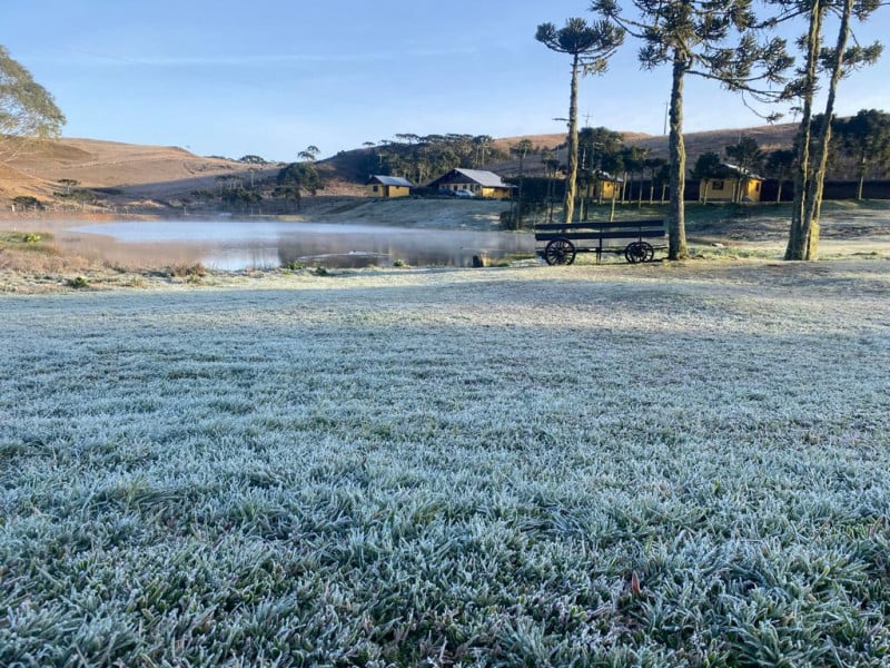 As temperaturas mínimas devem ocorrer principalmente nas primeiras horas do dia. Em algumas regiões, os termômetros podem se aproximar de 0°C. Nos Campos de Cima da Serra, como em São José dos Ausentes, são esperadas marcas entre 0°C e 2°C. Já na Fronteira com o Uruguai, as mínimas devem variar entre 3°C e 5°C. Na Região Metropolitana de Porto Alegre, os termômetros podem ficar abaixo dos 10°C.