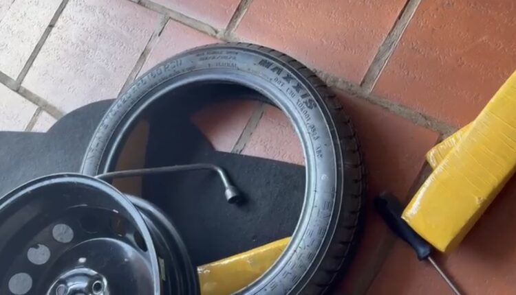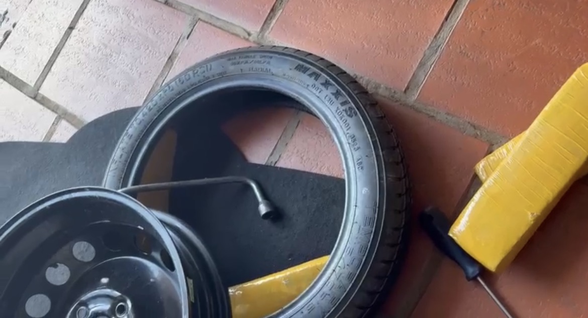 Durante a vistoria no automóvel, os agentes localizaram parte da droga escondida no interior do estepe. Outra porção foi encontrada dentro de uma mochila que estava com o motorista. Ao todo, foram apreendidos 5,6 quilos de maconha.