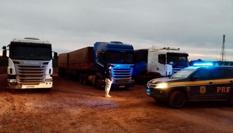 A Polícia Rodoviária Federal flagrou, no final da tarde desta segunda-feira (17), três caminhões realizando transporte com carga acima do permitido na BR-386, em Iraí. Juntos, os veículos somavam mais de 25 toneladas de excesso de peso.