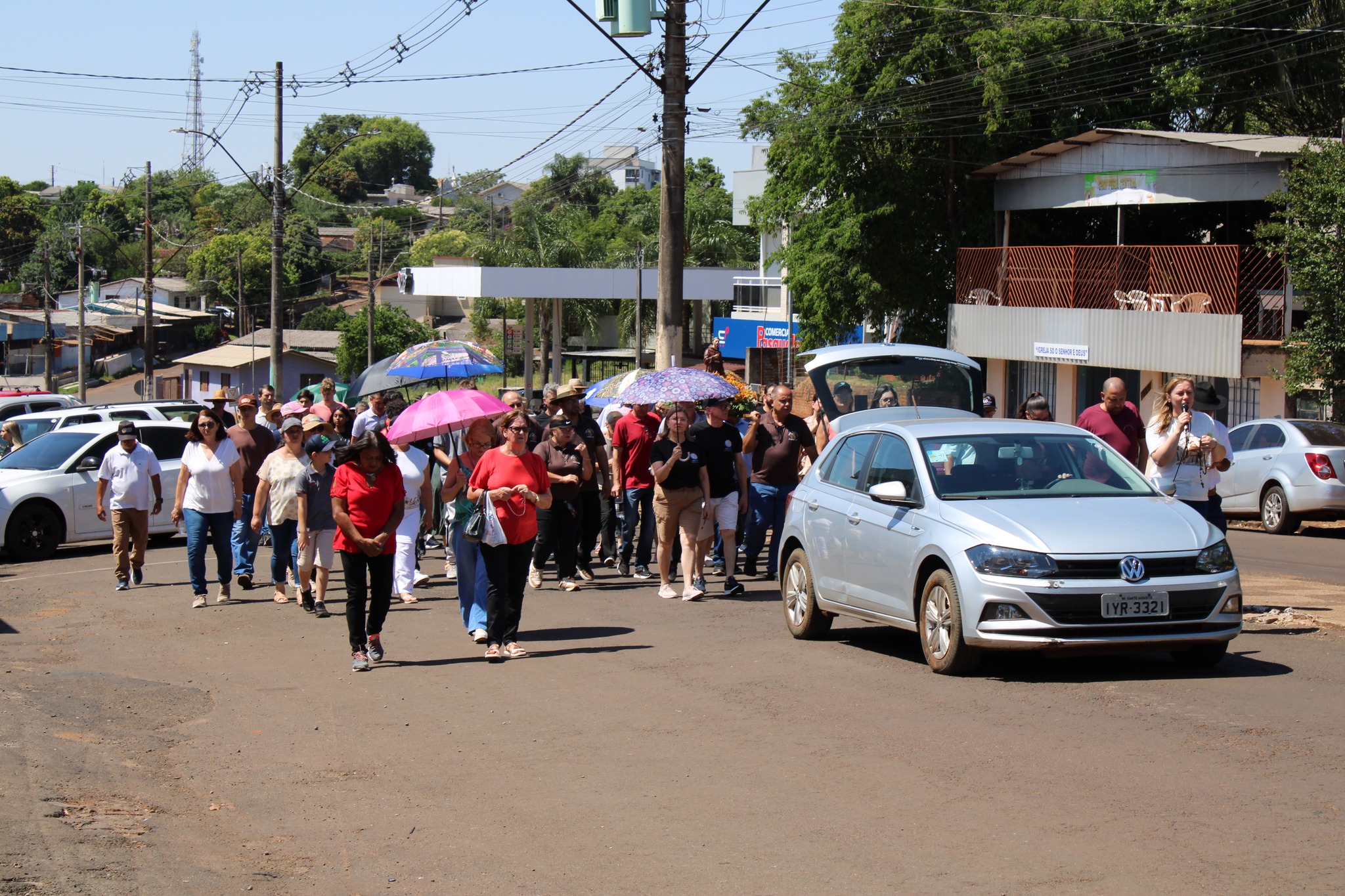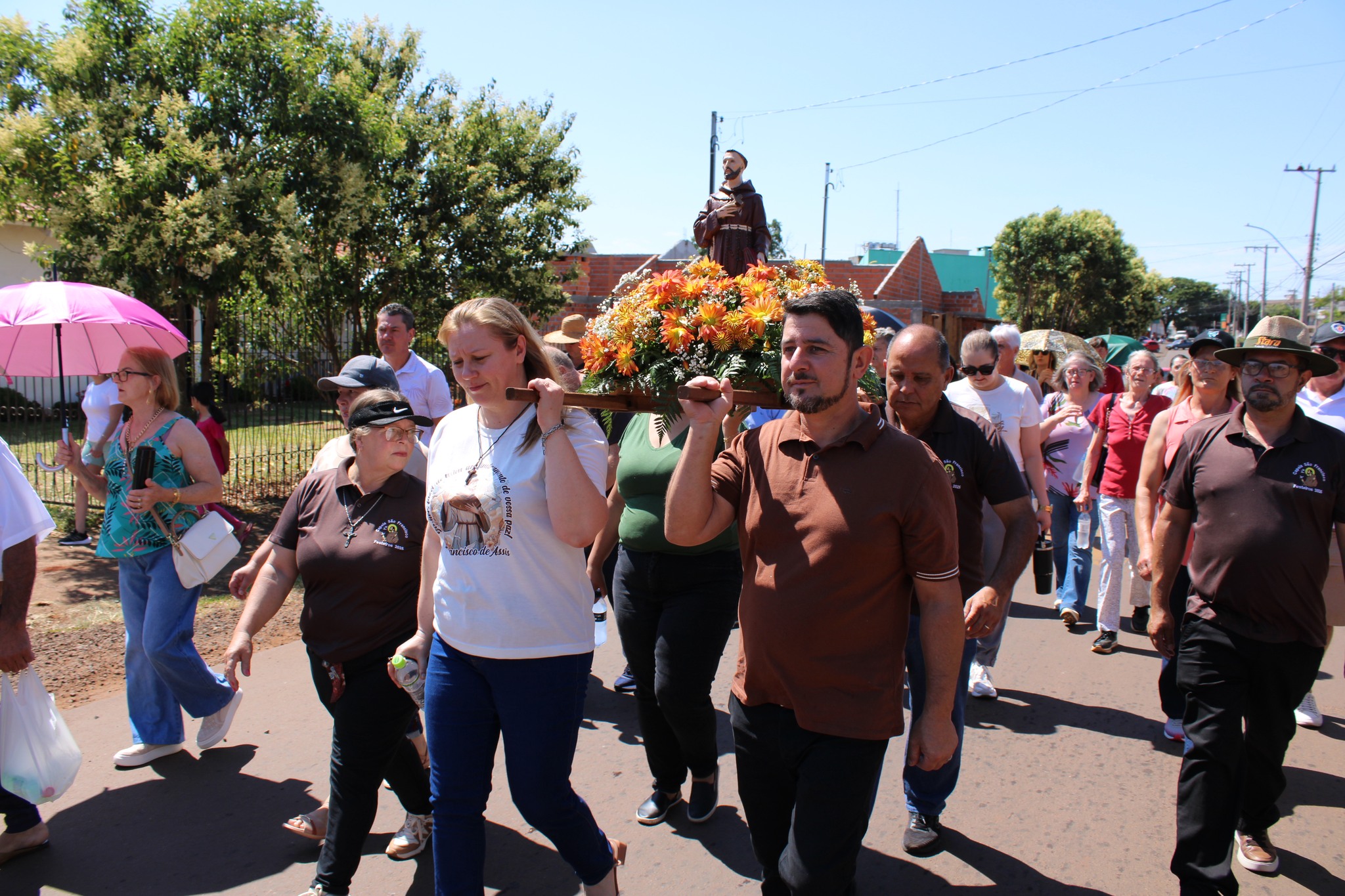 A programação de domingo iniciou às 9h40, com a caminhada devocional com a imagem de São Francisco de Assis, saindo em frente à Igreja Matriz em direção à Capela São Francisco, no Bairro São João. Durante o trajeto, os fiéis rezaram o terço, entoaram cânticos religiosos e participaram de duas paradas para bênçãos e oração.