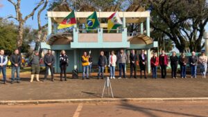 Em seguida, na presença das autoridades, alunos e professores de várias escolas houve o ato solene com o recebimento da Chama da Pátria, por parte do Executivo Municipal através do Vice-prefeito Vanderlei Carpes Martins, o hasteamento das bandeiras e os pronunciamentos. Lembramos que diferentemente dos últimos dois anos, no domingo dia 04 de setembro haverá o Desfile Cívico Estudantil e de Entidades a partir das 9h20min nas adjacências da Praça Pompílio Silva e no dia 07 de setembro a Extinção do Fogo Simbólico e encerramento da Semana da Pátria do Município às 17h através da SMEC e Coordenadoria de Cultura e Turismo.