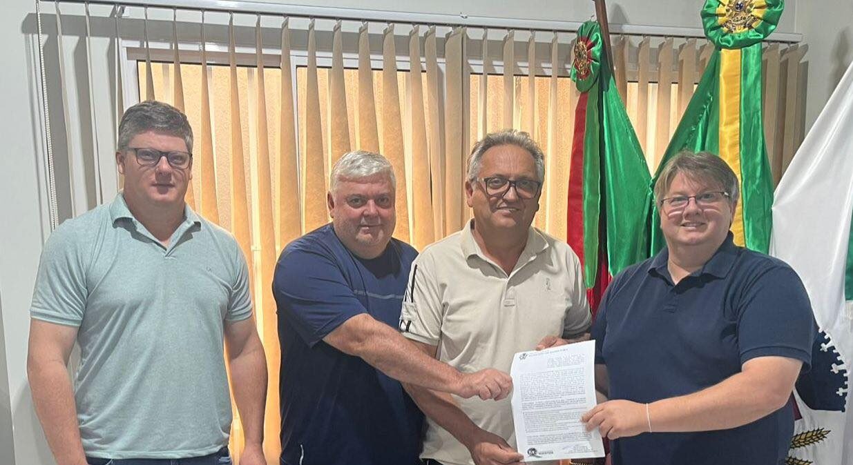 Participaram da assinatura o prefeito Malberk Antoine Kunst Dullius, o vice-prefeito Paulo Sérgio Gonzatto, o secretário municipal de Planejamento e Desenvolvimento, Luciano Schunemann, e o representante da empresa responsável pelas obras, João Vianei Bonafé.