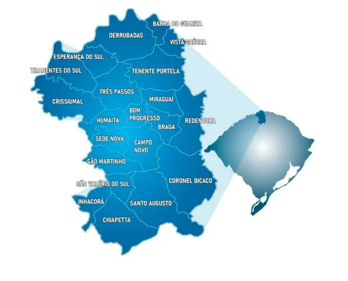 Os municípios com maior contribuição foram Três Passos, com mais de R$ 1 bilhão; Santo Augusto, com R$ 848 milhões; Tenente Portela, com R$ 579 milhões. Esses três centros urbanos concentram boa parte dos empregos formais, das empresas industriais e de serviços, funcionando como motores de dinamização regional.