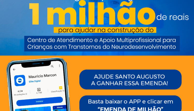 Está em andamento a votação para destinação de uma emenda de R$ 1 milhão, através do deputado federal, Mauricio Marcon (Podemos). A verba deverá beneficiar o projeto de criação do Centro de Atendimento a Crianças com Transtornos de Neurodesenvolvimento, que está em fase de implementação em Santo Augusto.