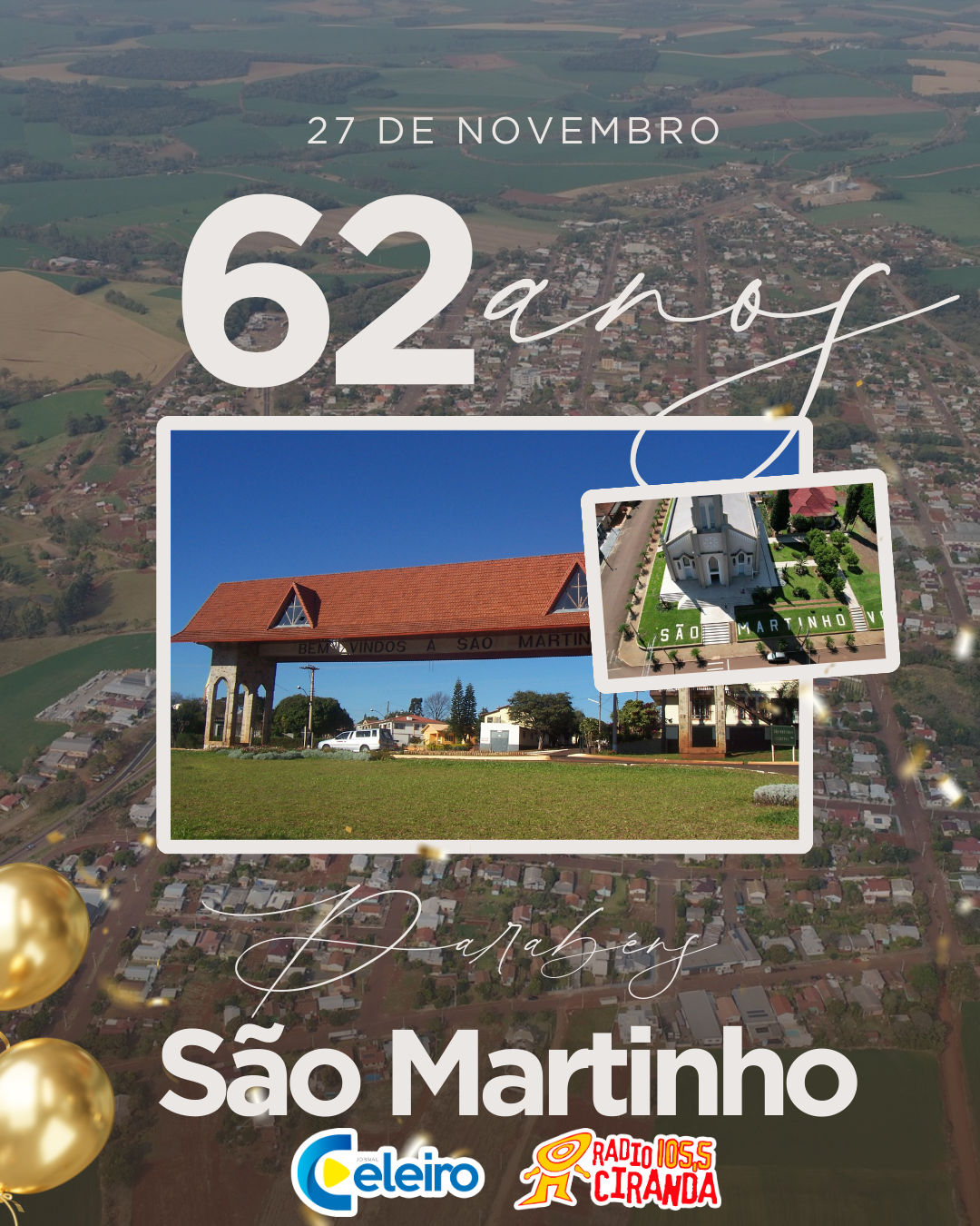 Neste aniversário, o Jornal O Celeiro e a Rádio Ciranda estendem seus parabéns à comunidade são-martinhense, celebrando o passado que constrói identidade e o futuro que inspira novas conquistas. Feliz aniversário, São Martinho!
