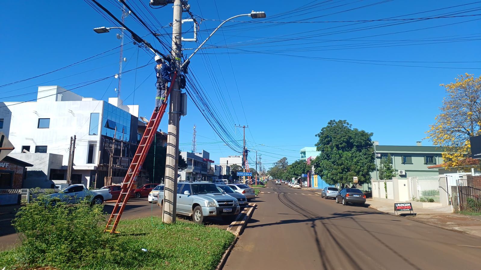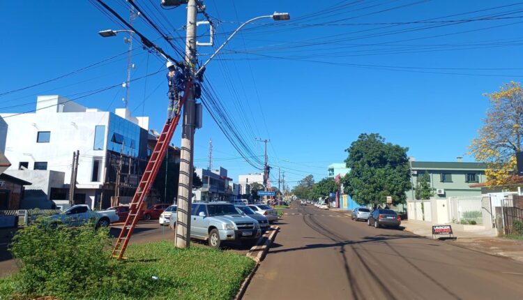 Seguem os trabalhos de retirada de fios em desuso nos postes de energia elétrica em Santo Augusto