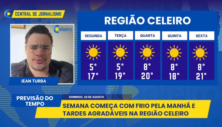 A semana começa com tempo firme e ensolarado em Santo Augusto e na Região Celeiro. Segundo a previsão, as mínimas registram frio nas primeiras horas do dia, enquanto as tardes serão de temperaturas agradáveis.