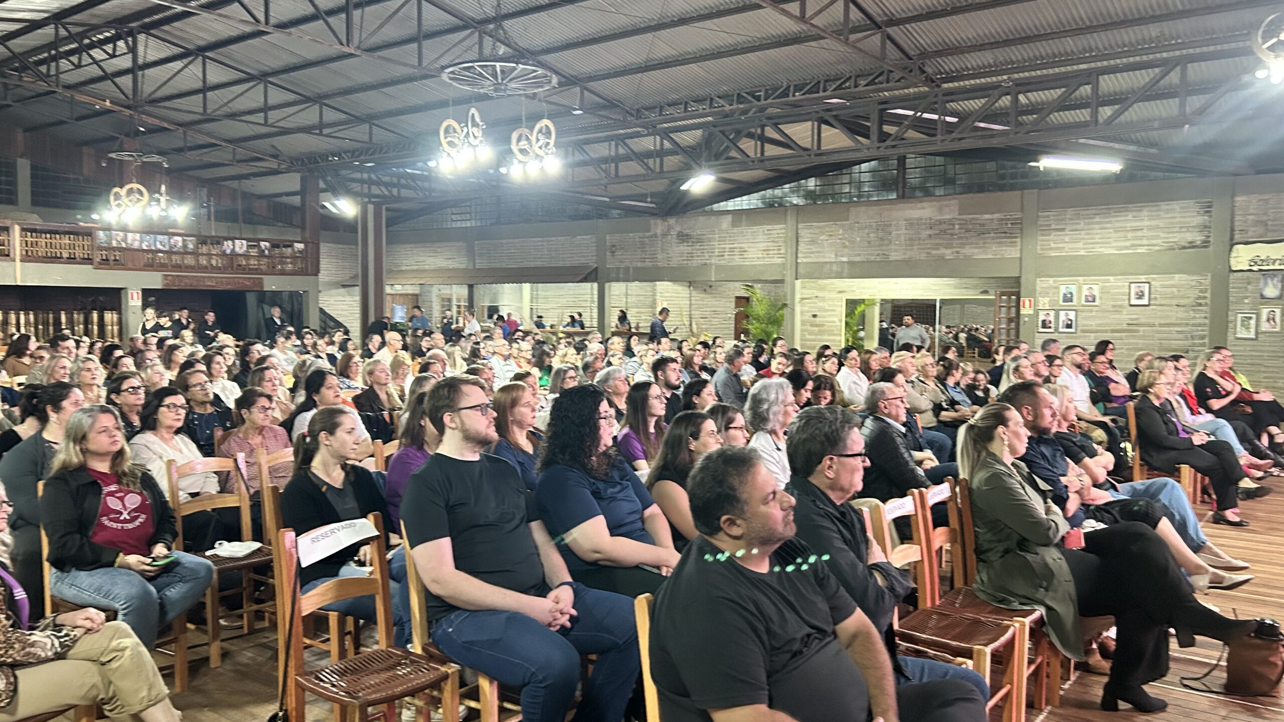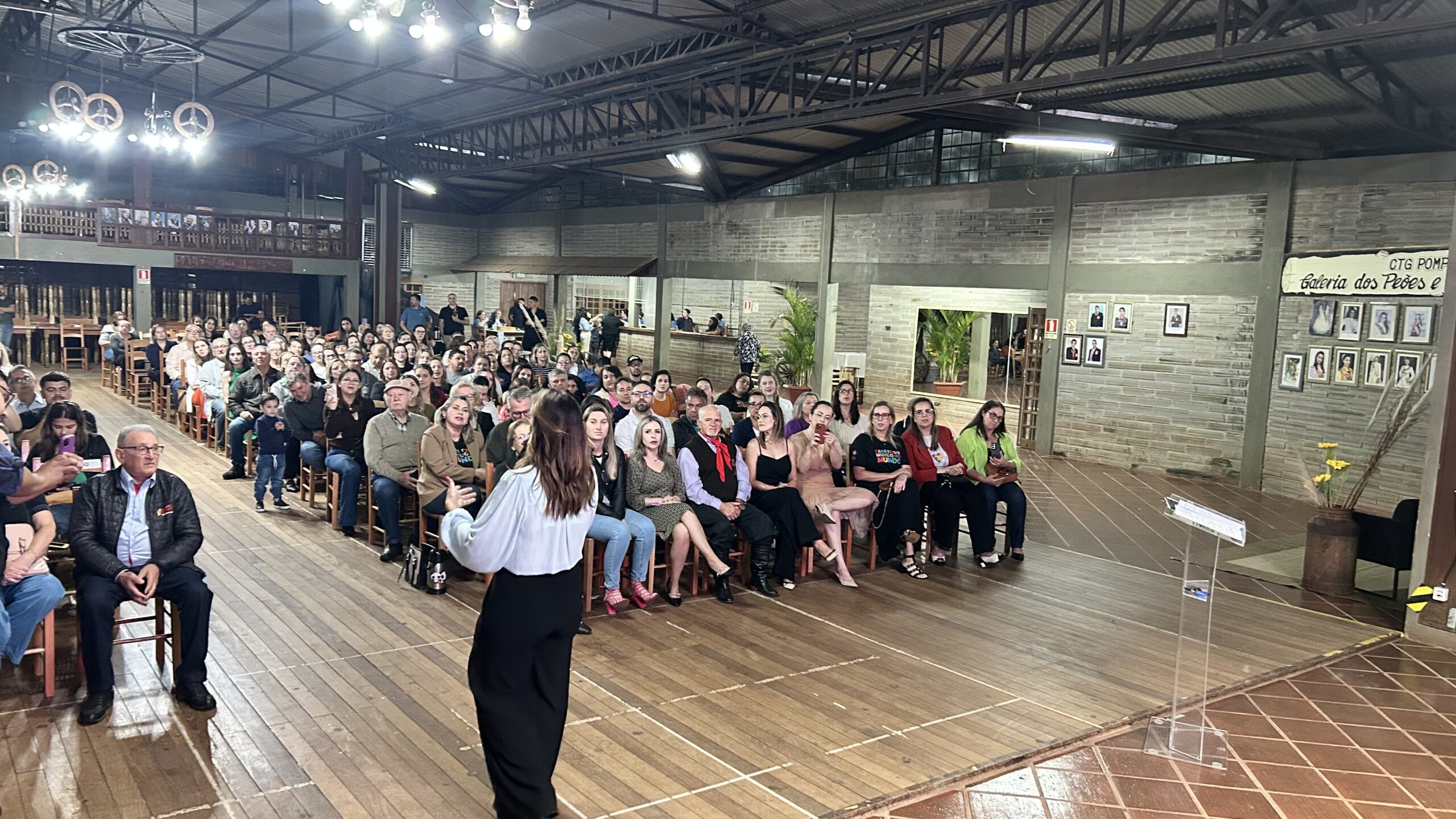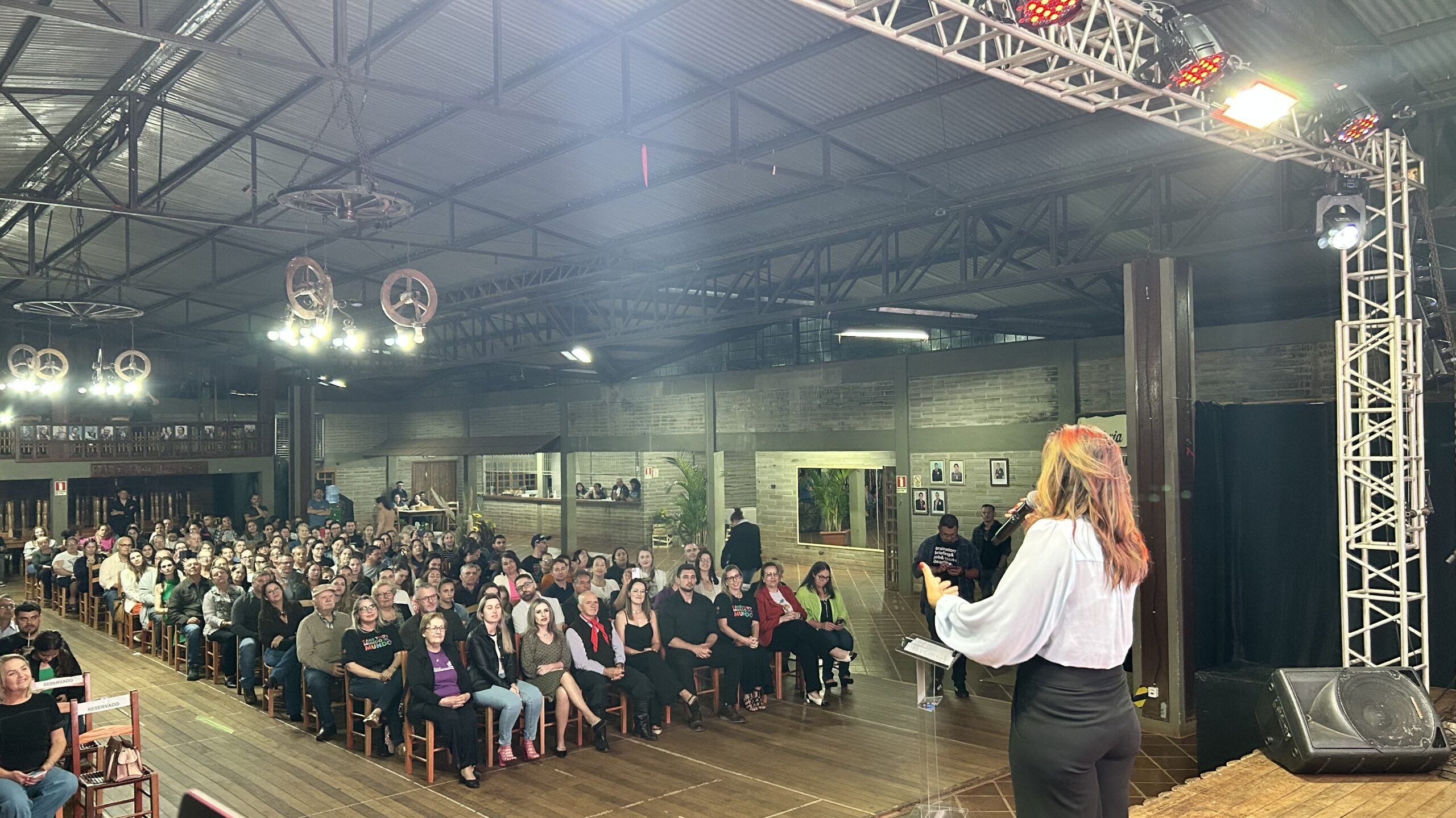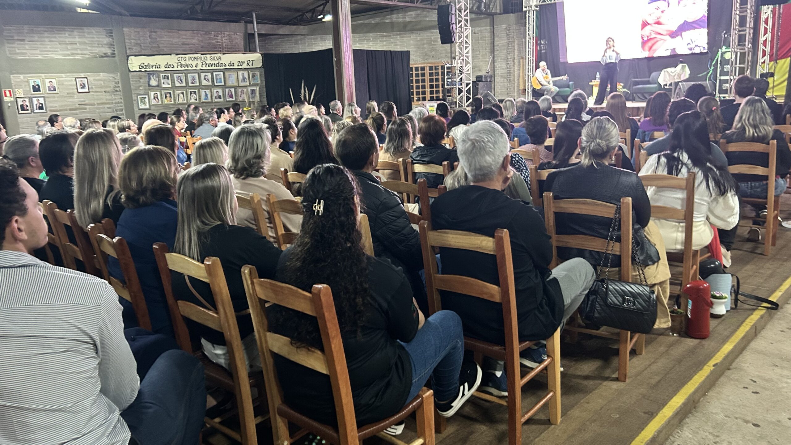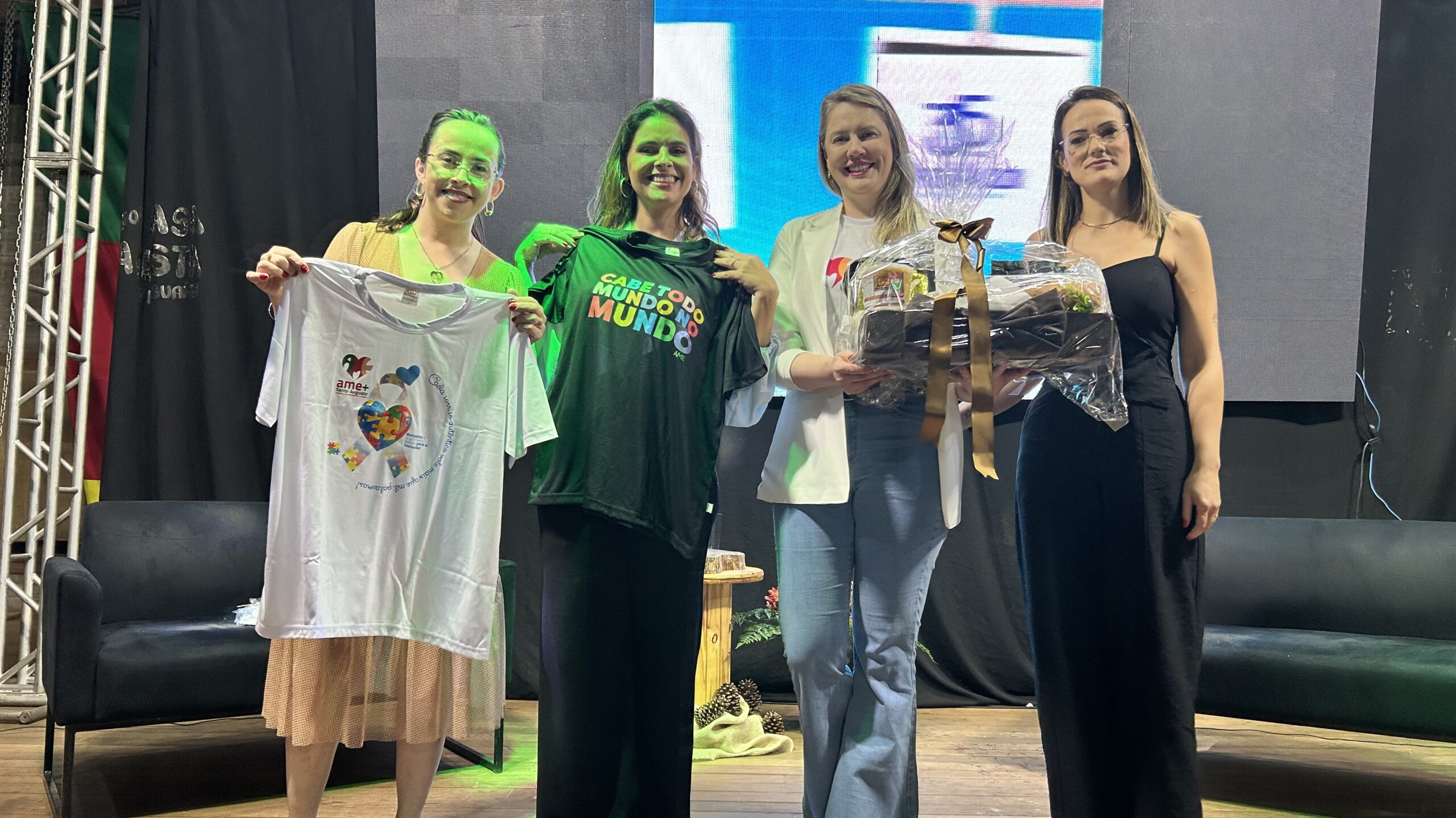 A jornalista e cantora Shana Müller esteve em Santo Augusto na noite desta quarta-feira (10) para apresentar a palestra-show “Somos Todos Diferentes”, evento promovido pela AME+, Centro TE Abraça e APAE. A atividade reuniu dezenas de pessoas no CTG Pompílio Silva e destacou a importância da inclusão, da empatia e do reconhecimento da diversidade no cotidiano das famílias.