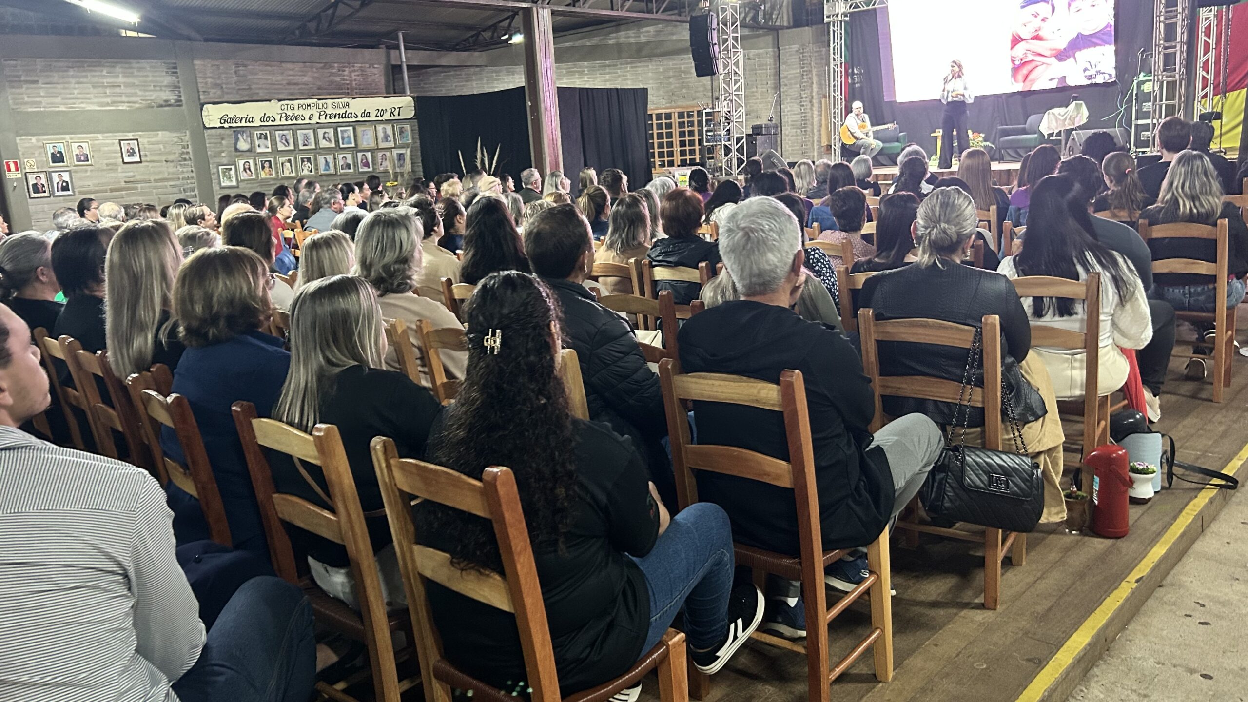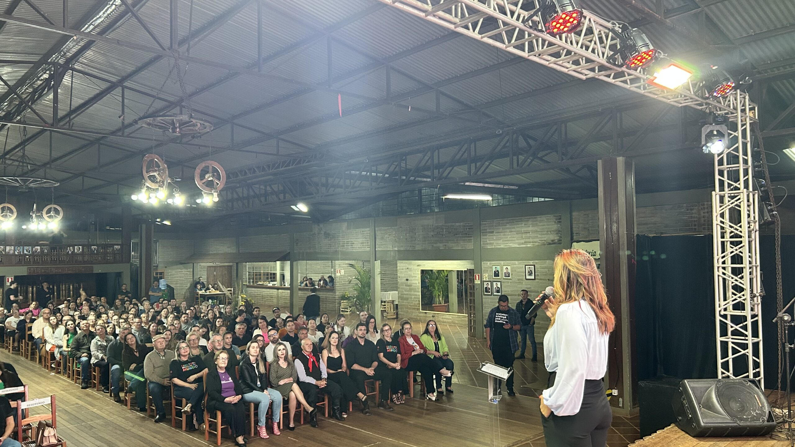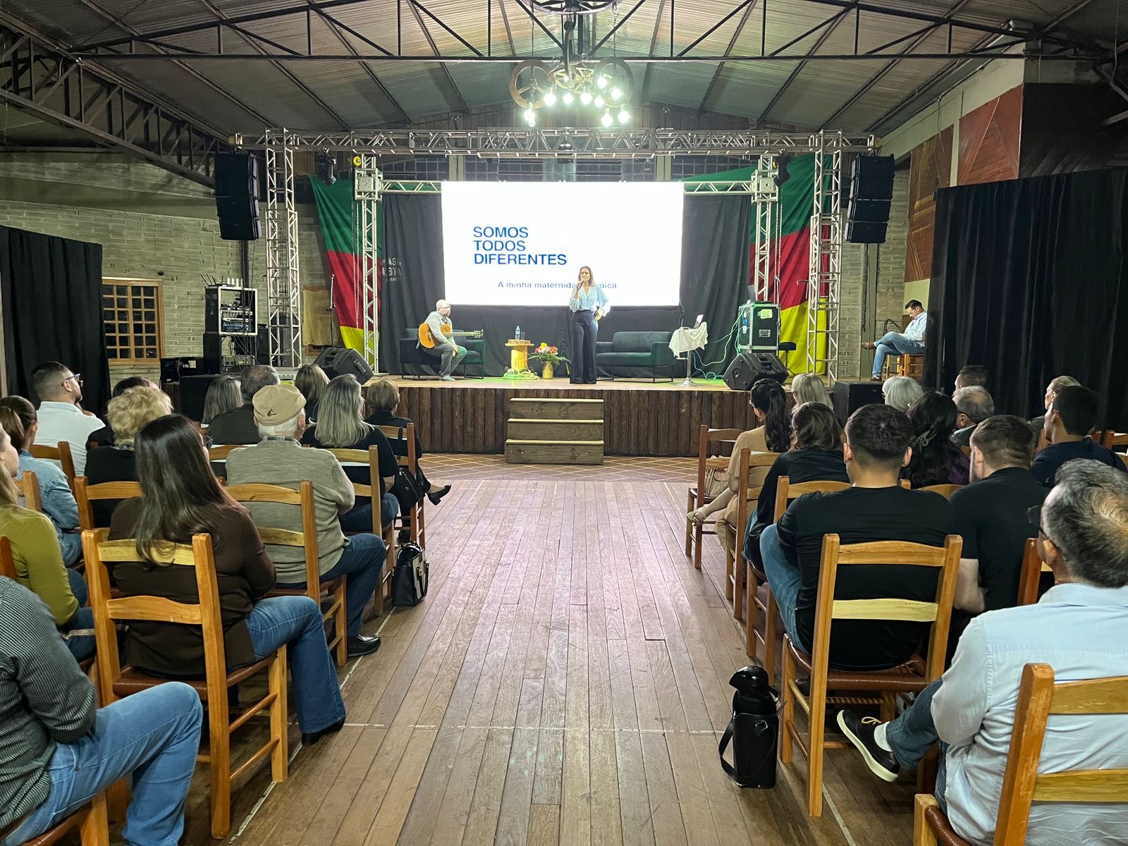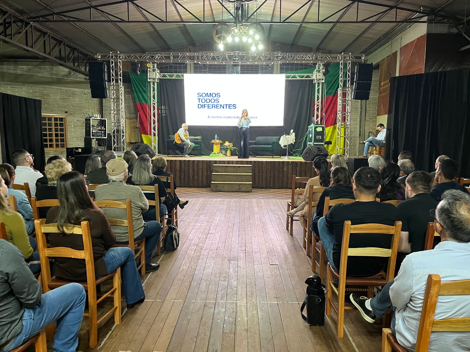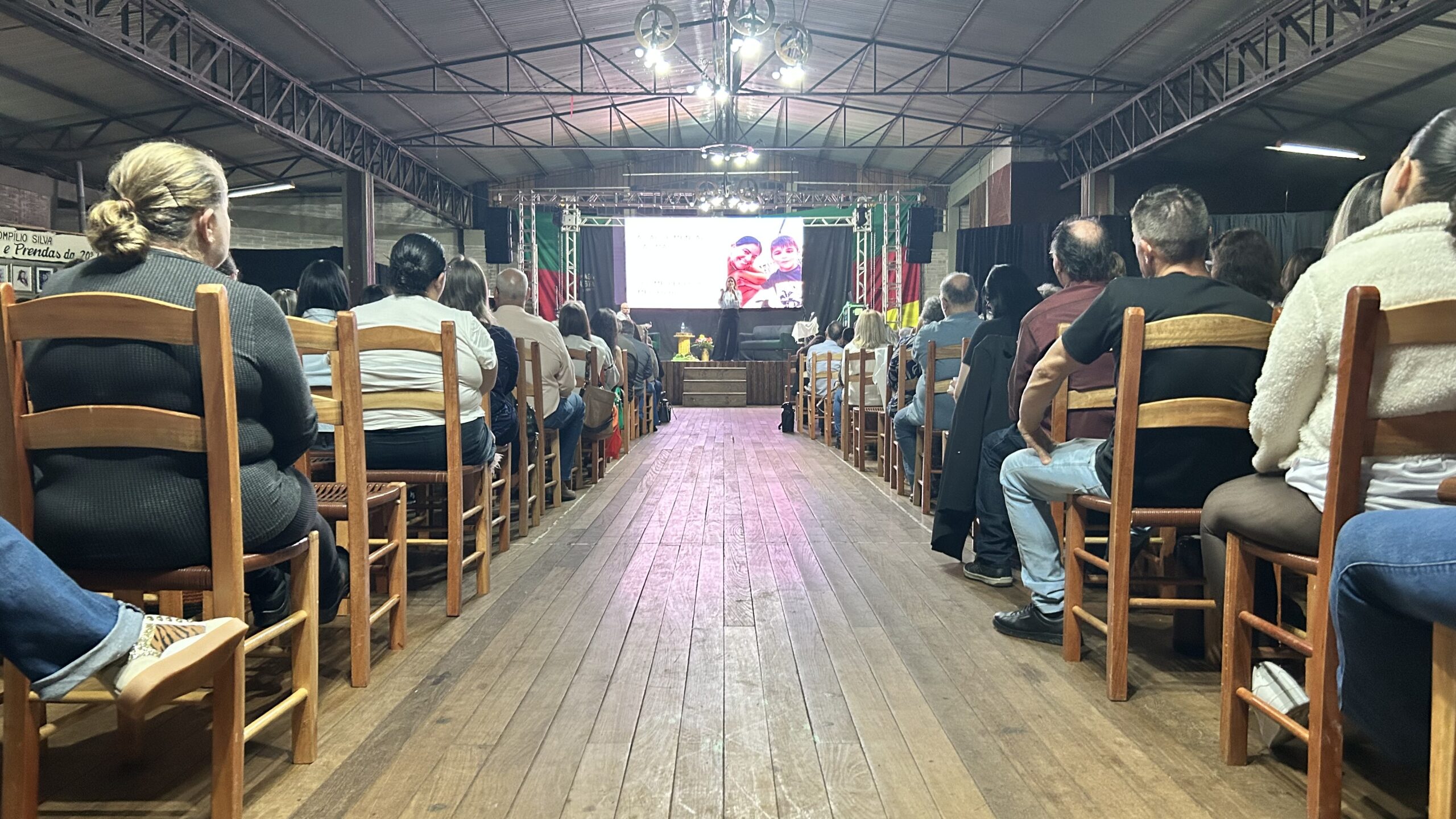 A jornalista e cantora Shana Müller esteve em Santo Augusto na noite desta quarta-feira (10) para apresentar a palestra-show “Somos Todos Diferentes”, evento promovido pela AME+, Centro TE Abraça e APAE. A atividade reuniu dezenas de pessoas no CTG Pompílio Silva e destacou a importância da inclusão, da empatia e do reconhecimento da diversidade no cotidiano das famílias.