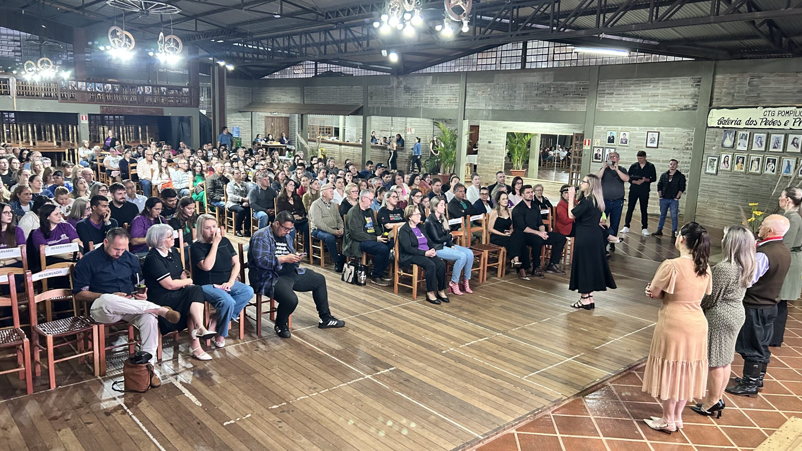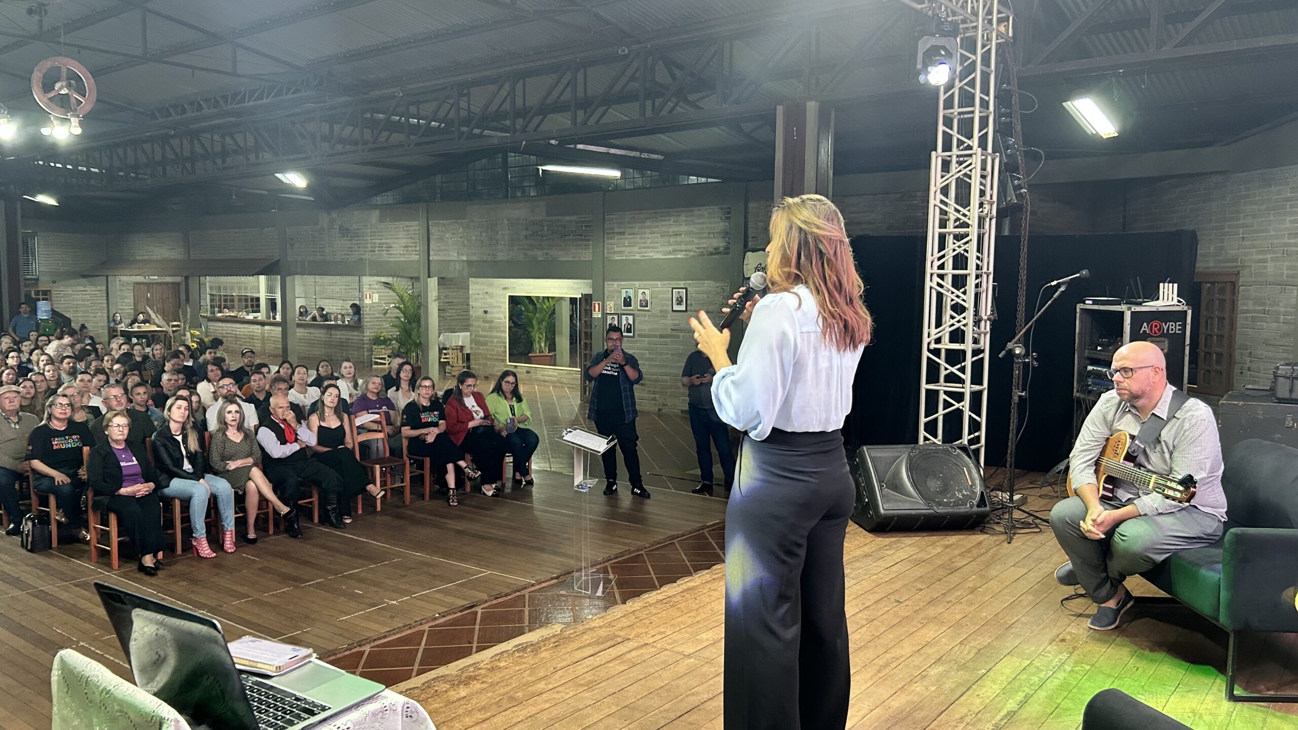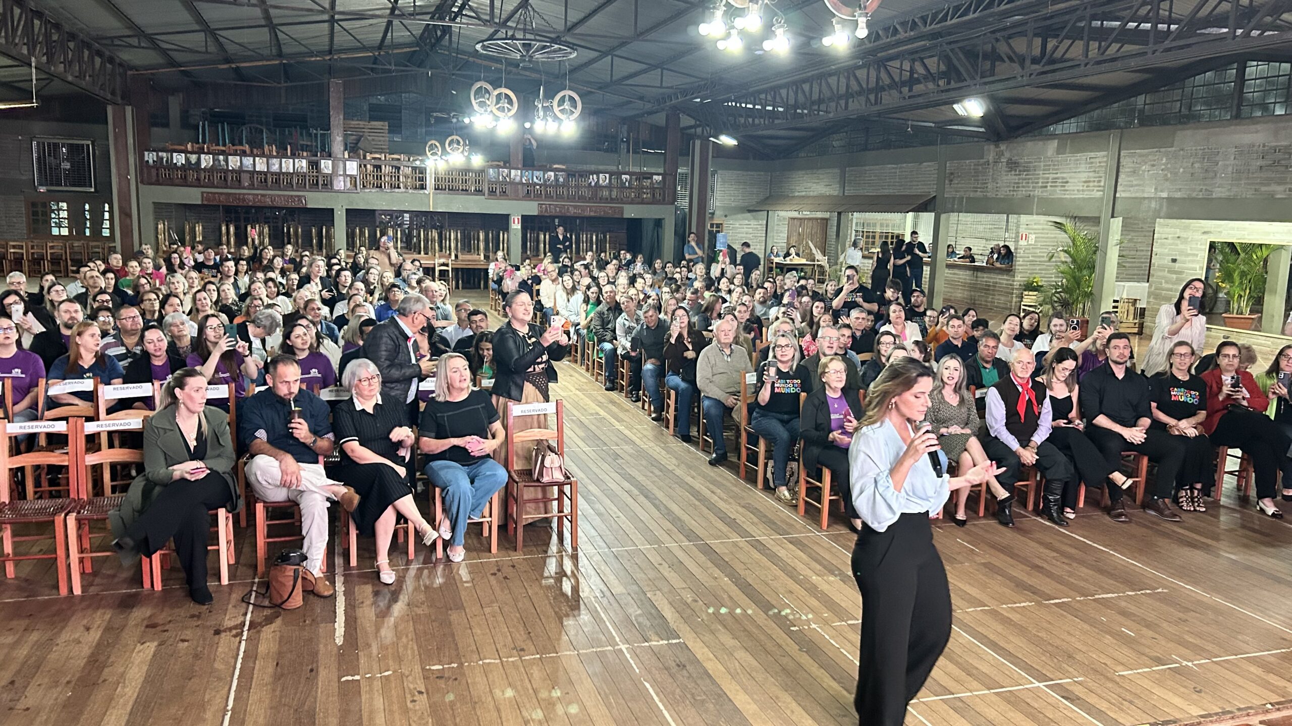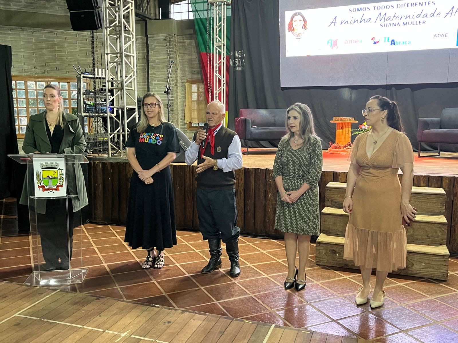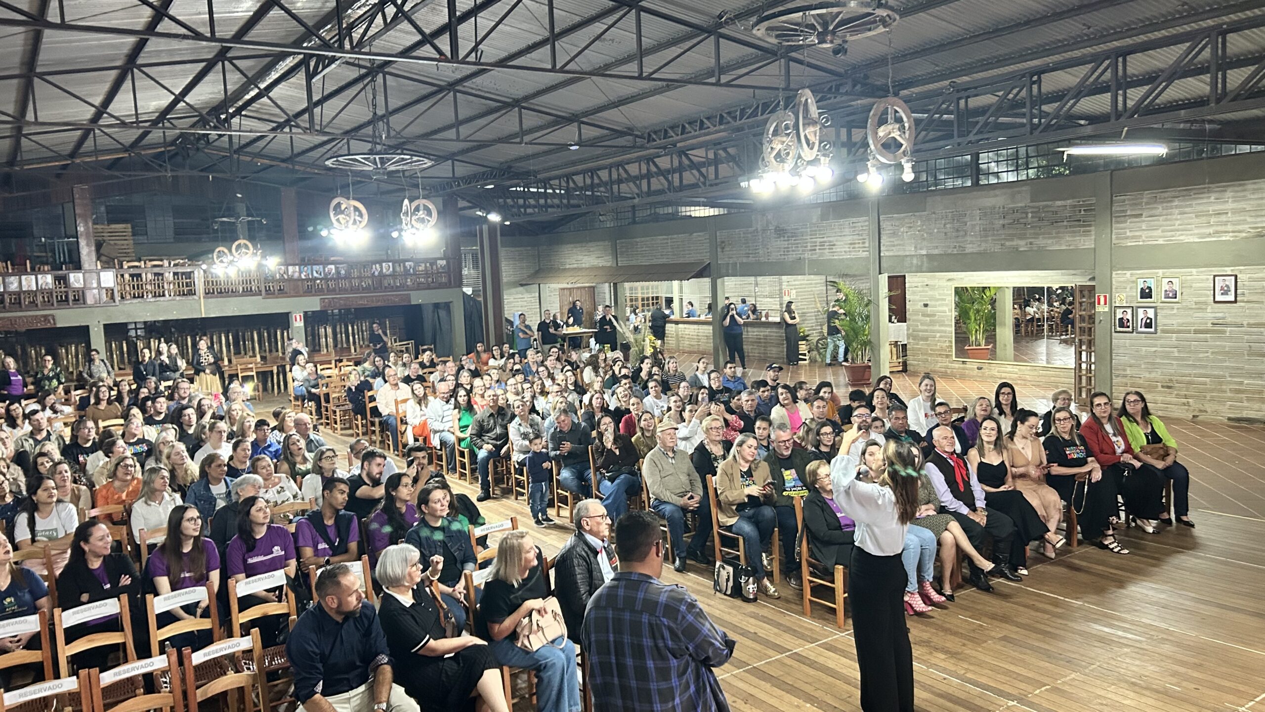 A jornalista e cantora Shana Müller esteve em Santo Augusto na noite desta quarta-feira (10) para apresentar a palestra-show “Somos Todos Diferentes”, evento promovido pela AME+, Centro TE Abraça e APAE. A atividade reuniu dezenas de pessoas no CTG Pompílio Silva e destacou a importância da inclusão, da empatia e do reconhecimento da diversidade no cotidiano das famílias.
