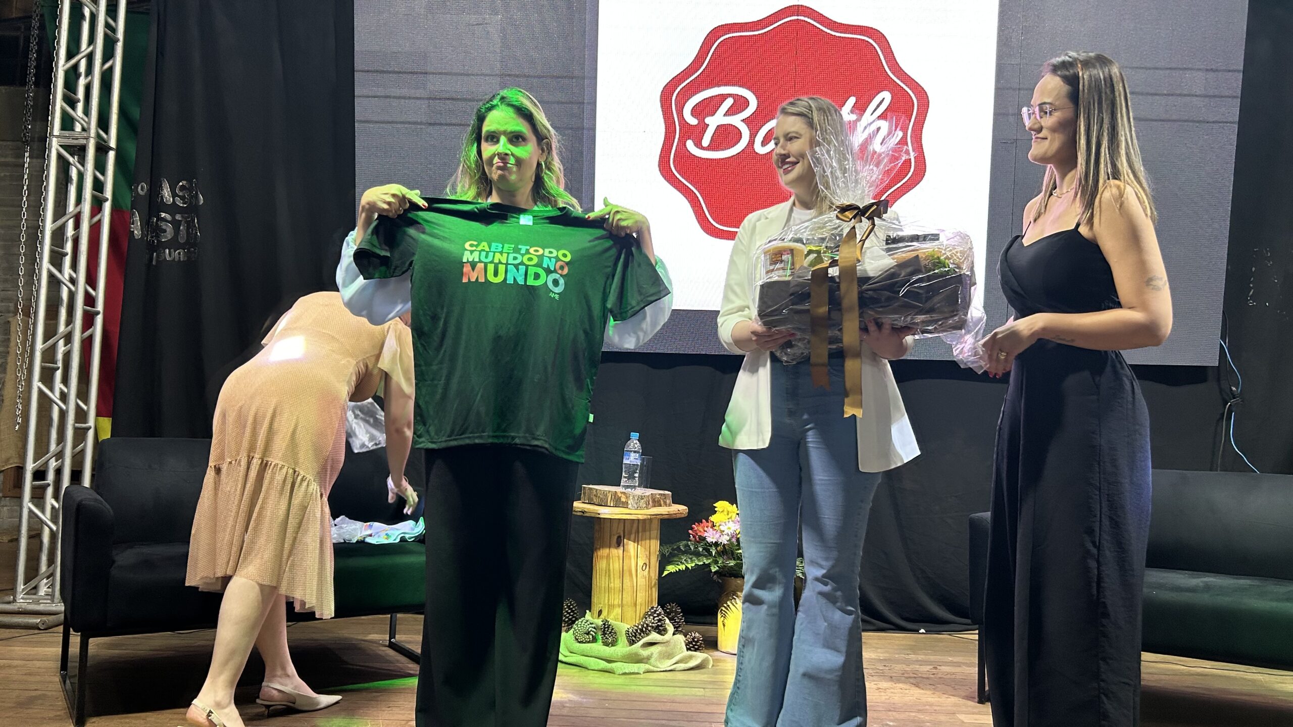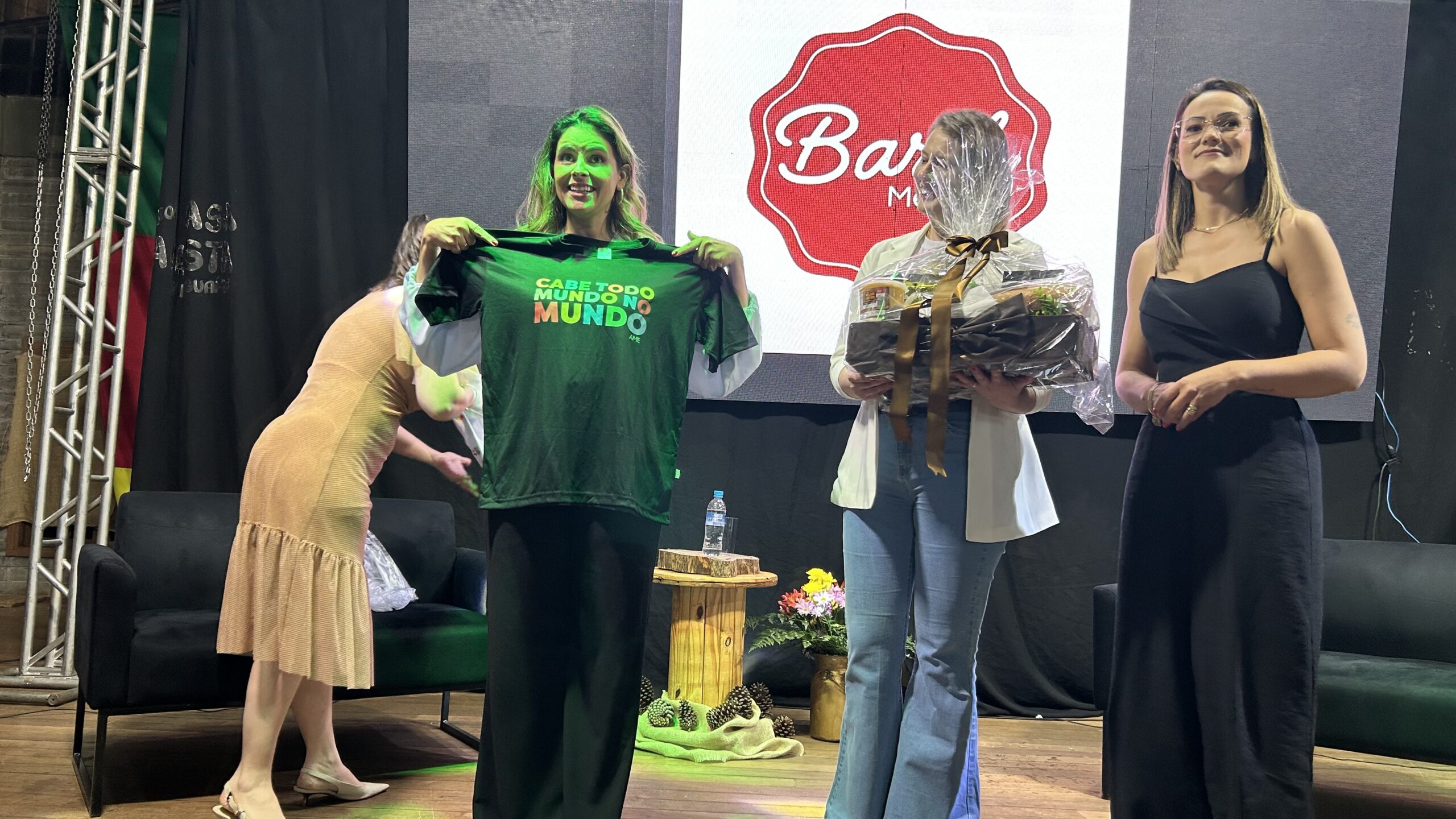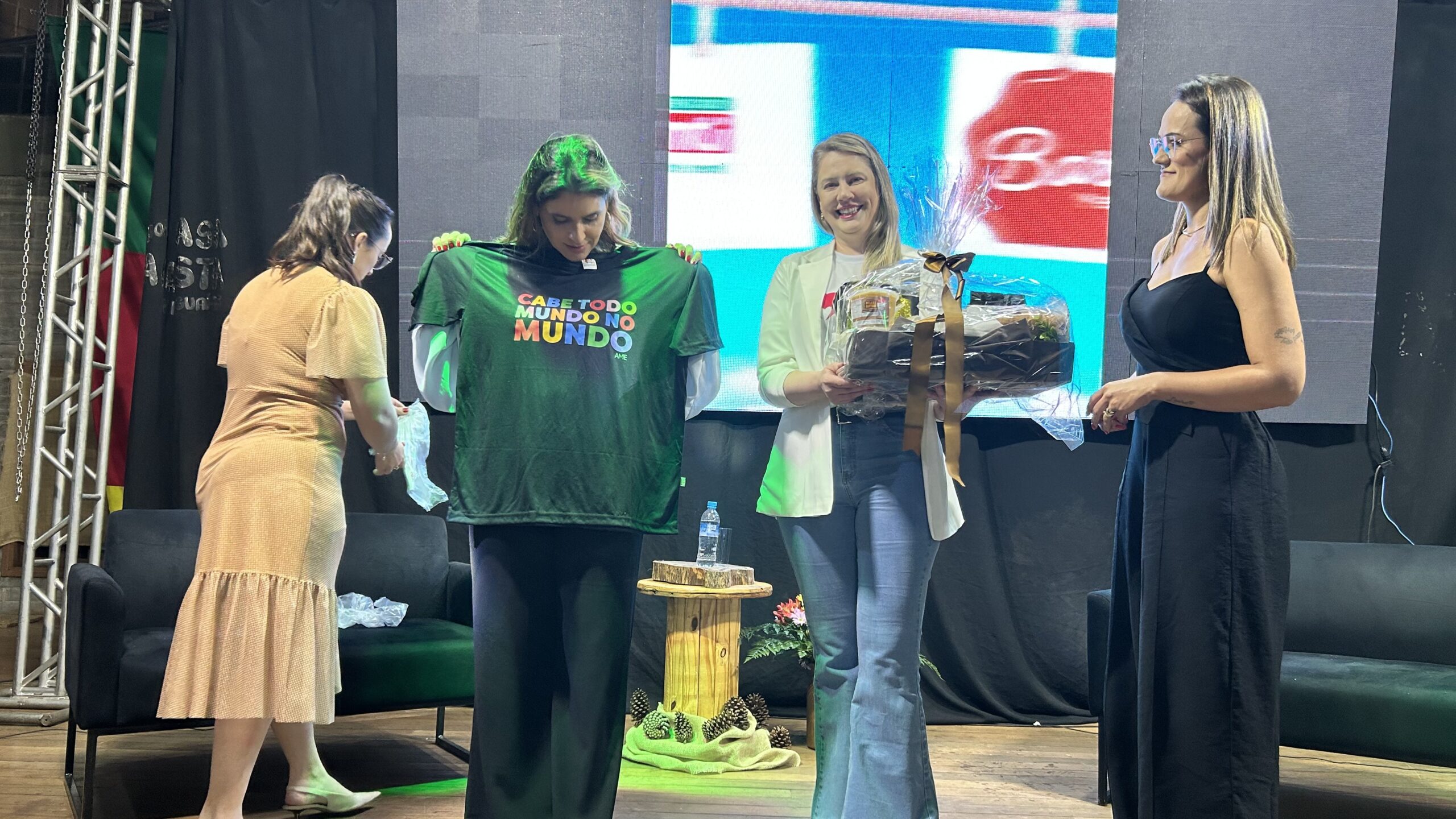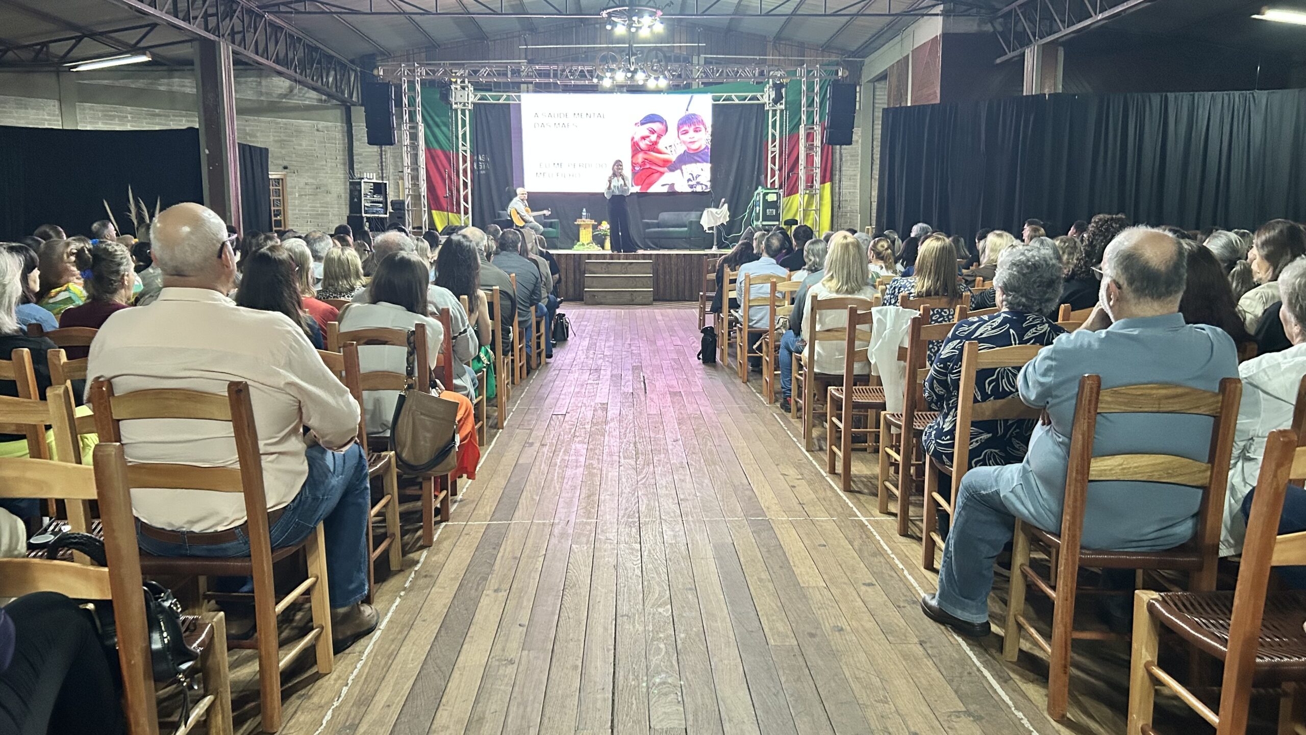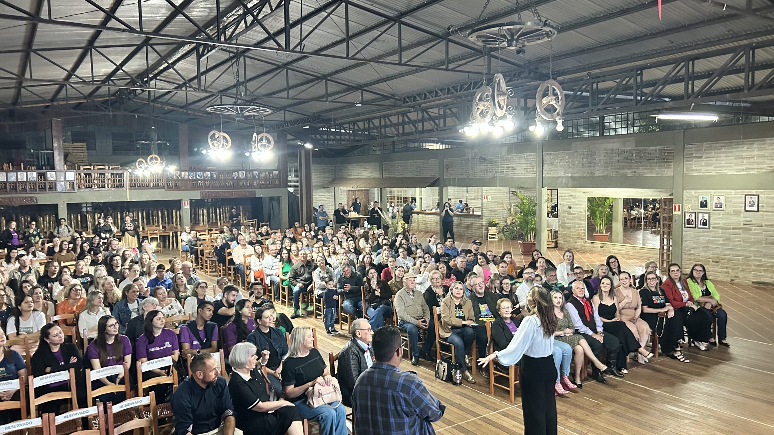 A jornalista e cantora Shana Müller esteve em Santo Augusto na noite desta quarta-feira (10) para apresentar a palestra-show “Somos Todos Diferentes”, evento promovido pela AME+, Centro TE Abraça e APAE. A atividade reuniu dezenas de pessoas no CTG Pompílio Silva e destacou a importância da inclusão, da empatia e do reconhecimento da diversidade no cotidiano das famílias.