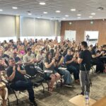 Durante a palestra, Bernardes abordou a importância da motivação no ambiente escolar, a construção de vínculos com os estudantes e estratégias para tornar o processo de ensino-aprendizagem mais significativo e atrativo.