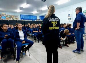 Na manhã da última segunda-feira, 24 de junho, a equipe do Papo de Responsa da 22ª Região Policial, manteve um diálogo, primeiramente, com alunos do 6°e 8º e após com 7°e 9°anos, bem como seus professores, da Escola Municipal de Ensino Fundamental Ildo Menegheti, em Três Passos. Ao todo, segundo informações, foram cerca de 200 ouvintes.