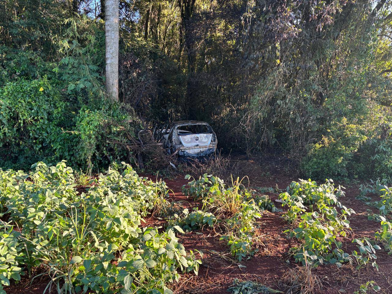 Um veículo Hyundai foi localizado completamente carbonizado em uma área de lavoura e mata na comunidade de Estancado Alto, interior de Sarandi, por volta das 15h de terça-feira (17). O Corpo de Bombeiros Militar foi acionado para atender a ocorrência de incêndio e encontrou o automóvel já destruído pelas chamas.