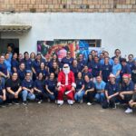 Para tornar o dia ainda mais especial, o Papai Noel marcou presença e entregou lembranças às crianças, encantando os pequenos e reforçando o clima festivo.