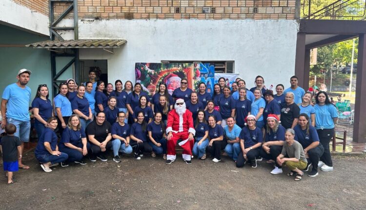 Para tornar o dia ainda mais especial, o Papai Noel marcou presença e entregou lembranças às crianças, encantando os pequenos e reforçando o clima festivo.