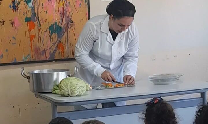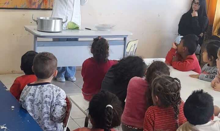 Já na quarta-feira, a nutricionista Tais Reis conduziu uma roda de conversa com os alunos, reforçando a relevância de uma dieta equilibrada desde a infância.