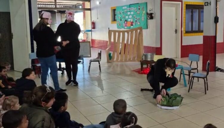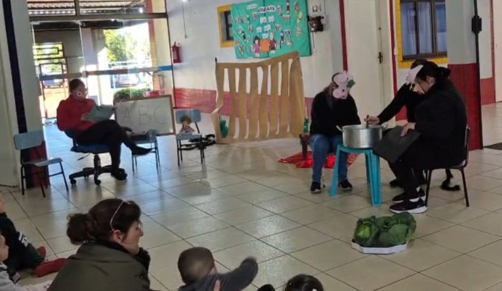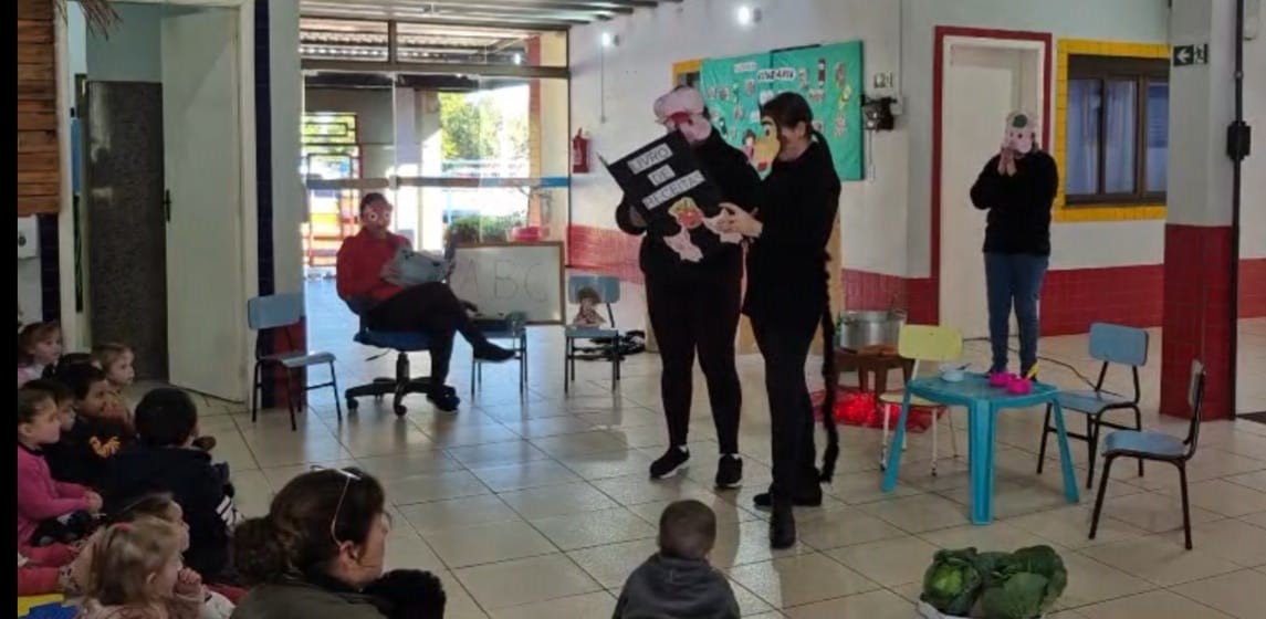 Na segunda-feira, professoras das turmas de maternal 2 apresentaram o teatro A História do Lobo e os Porquinhos, destacando de maneira lúdica valores como estudo, coragem, gentileza e diálogo para superar conflitos, além de ressaltar bons hábitos alimentares.
