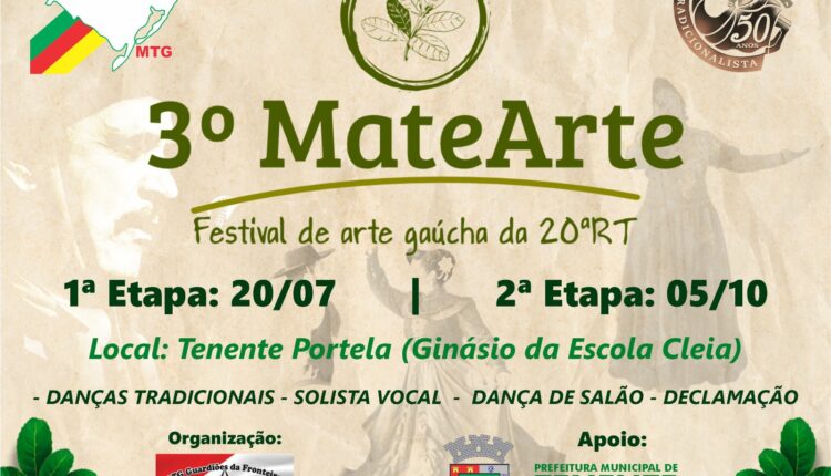 Tenente Portela será o palco das emoções do MateArte 2025, o Festival de Arte Gaúcha da 20ª Região Tradicionalista. O município sediará as duas etapas do evento, marcadas para os dias 20 de julho e 5 de outubro, no Ginásio da Escola Estadual Professora Cleia Salete Dalberto. A expectativa é reunir aproximadamente 3 mil pessoas em cada uma das datas.
