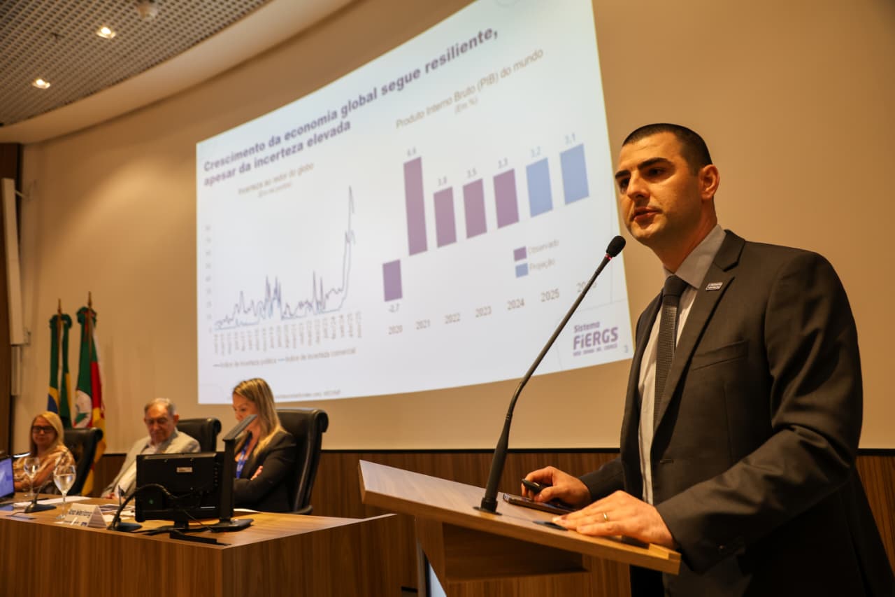 “O cenário internacional ganhou uma importância enorme nas análises de economistas e empresas neste ano. Vivemos um contexto de forte tensão, marcado por guerras e conflitos no Oriente Médio. Por outro lado, também surgem oportunidades para o próximo ano, como o acordo Mercosul–União Europeia, a abertura de novos mercados na Ásia e a possível estabilização da Argentina. Além disso, contamos com um agronegócio robusto, impulsionado por uma boa safra no Brasil”, ponderou o economista-chefe.