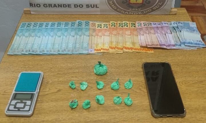 Durante a abordagem, os policiais localizaram e apreenderam onze porções de cocaína prontas para comercialização, além de um smartphone, uma balança de precisão e uma quantia em dinheiro – itens comumente associados à atividade de tráfico.