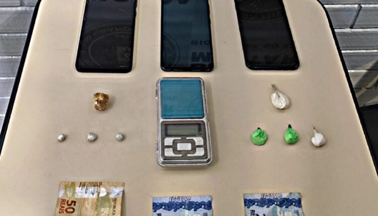 Durante a ação, foram localizadas e apreendidas quatro porções de crack, quatro porções de cocaína, três smartphone, balança de precisão e uma certa quantia em dinheiro.
