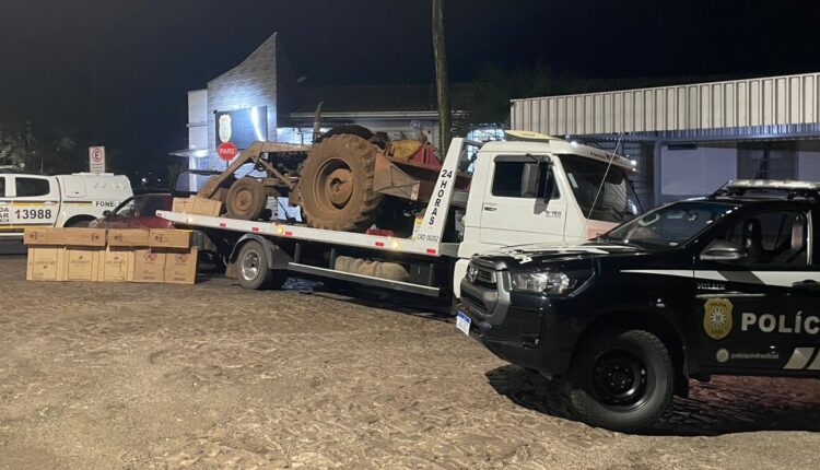 Durante a abordagem, as autoridades apreenderam aproximadamente 5 mil maços de cigarros de origem estrangeira sem documentação fiscal, além de um automóvel Volkswagen Gol e um trator agrícola Valmet, modelo 80, utilizados no transporte da carga ilegal.