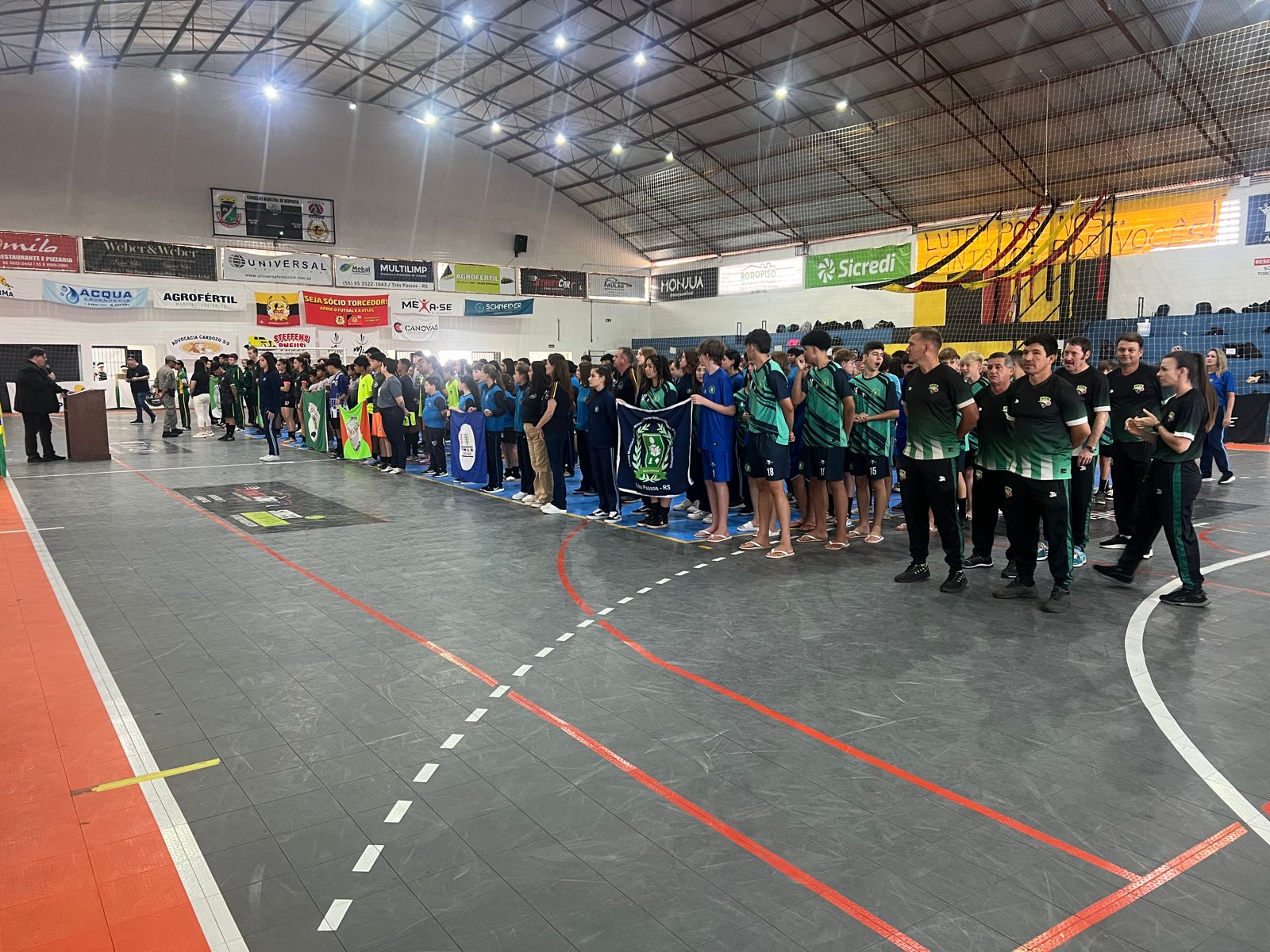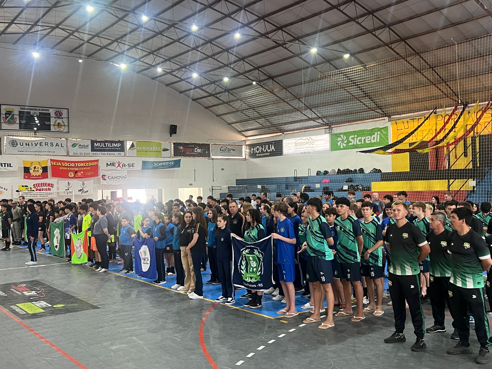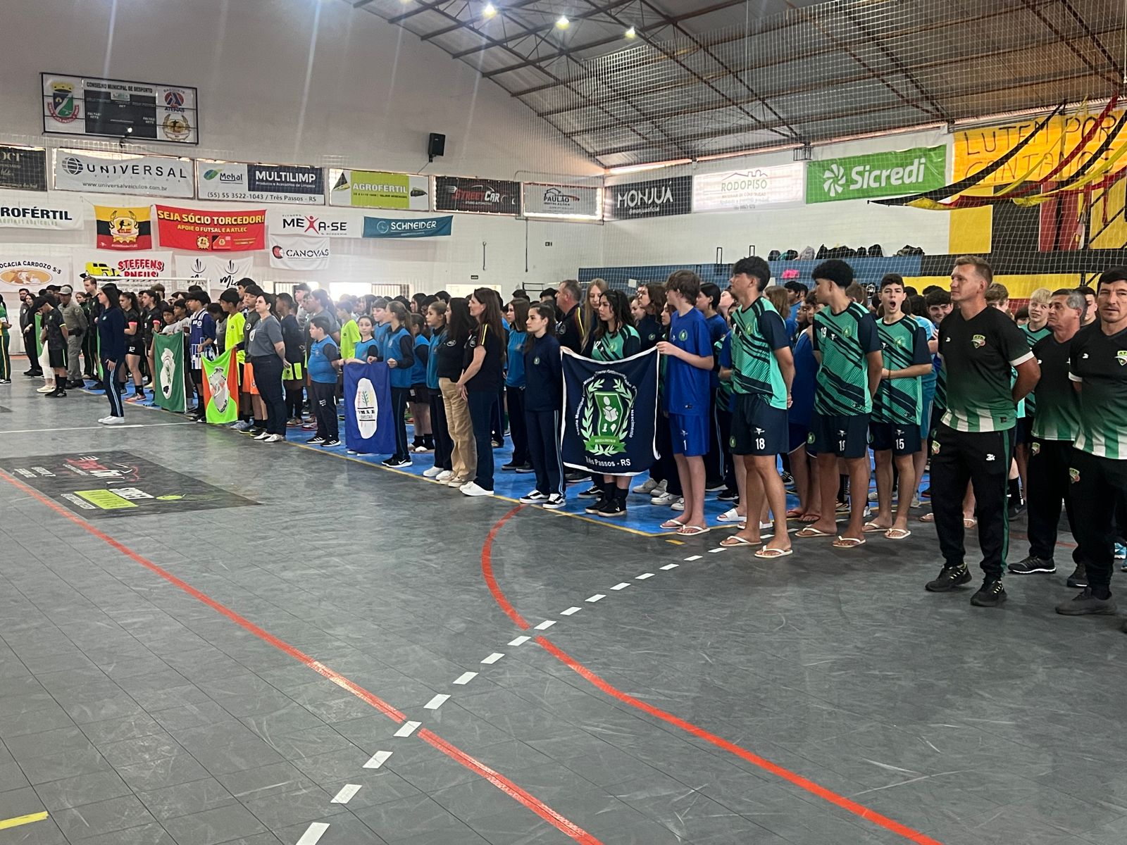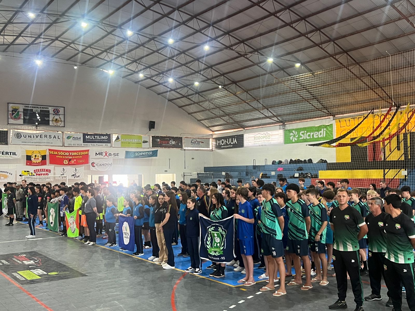 Acontece ao longo desta quinta-feira, no Ginásio Municipal de Esportes Aloysio Scheuermann, em Três Passos, a 1ª Olimpíada das Escolas Cívico-Militares da Região Noroeste do Rio Grande do Sul. O evento reúne estudantes de seis instituições, marcando um momento inédito para a integração e o desenvolvimento das práticas esportivas entre as escolas participantes.